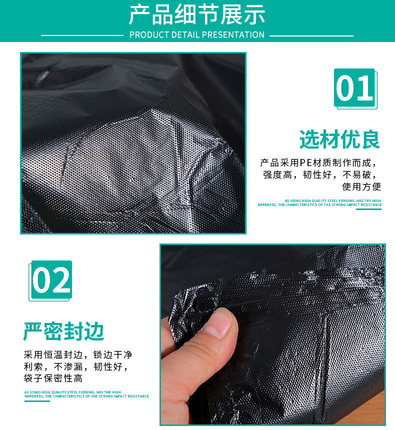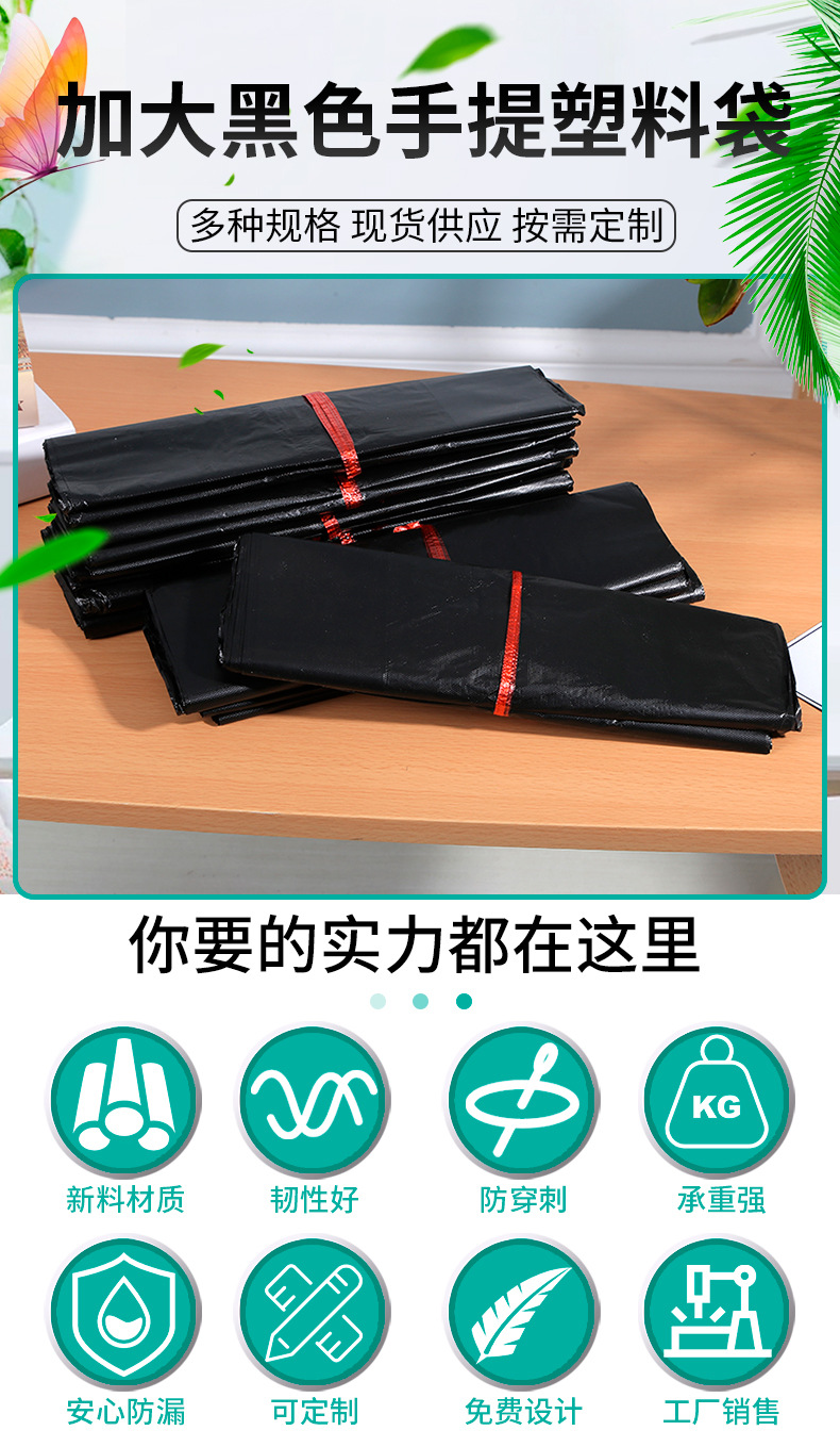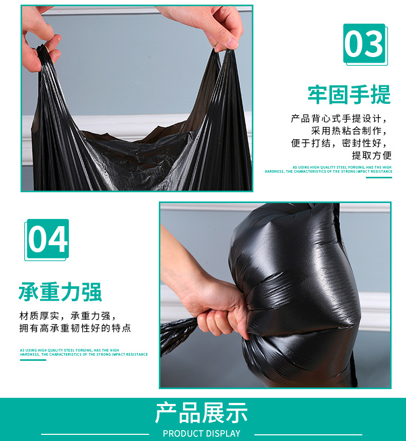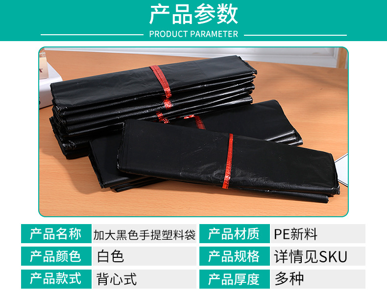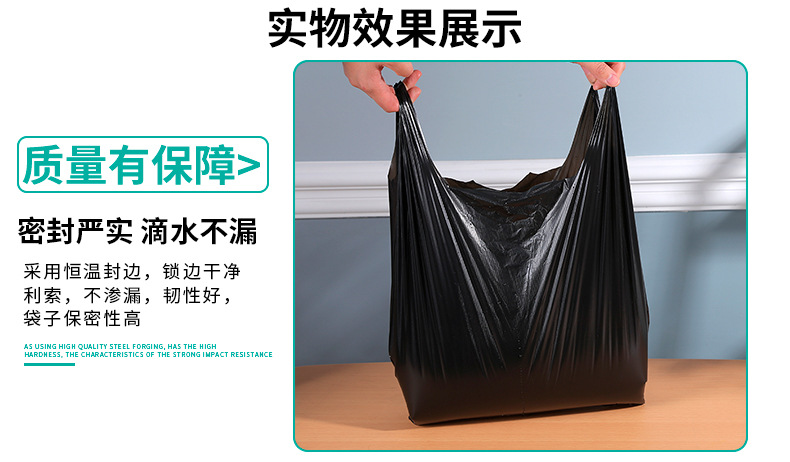 대형 검정색 휴대용 비닐 봉투 조끼 스타일 조끼 가정용 두꺼운 쓰레기 봉투 일회용 식품 등급
