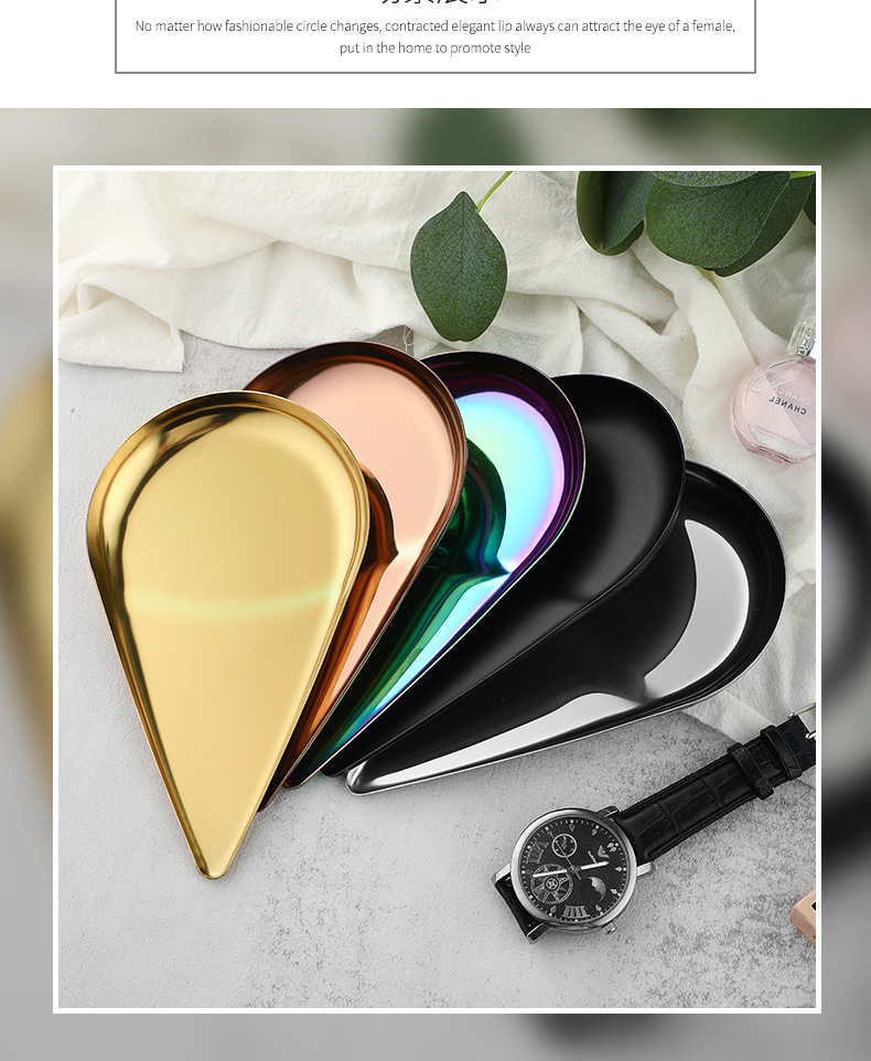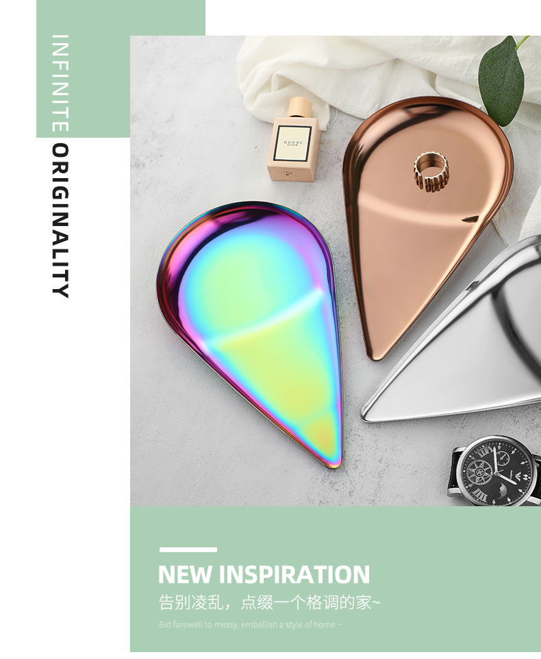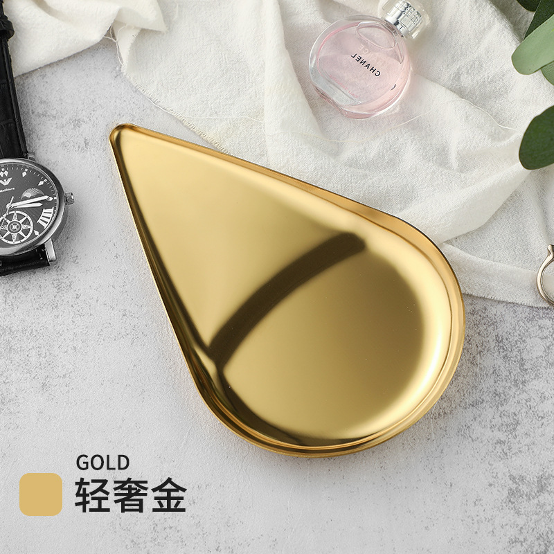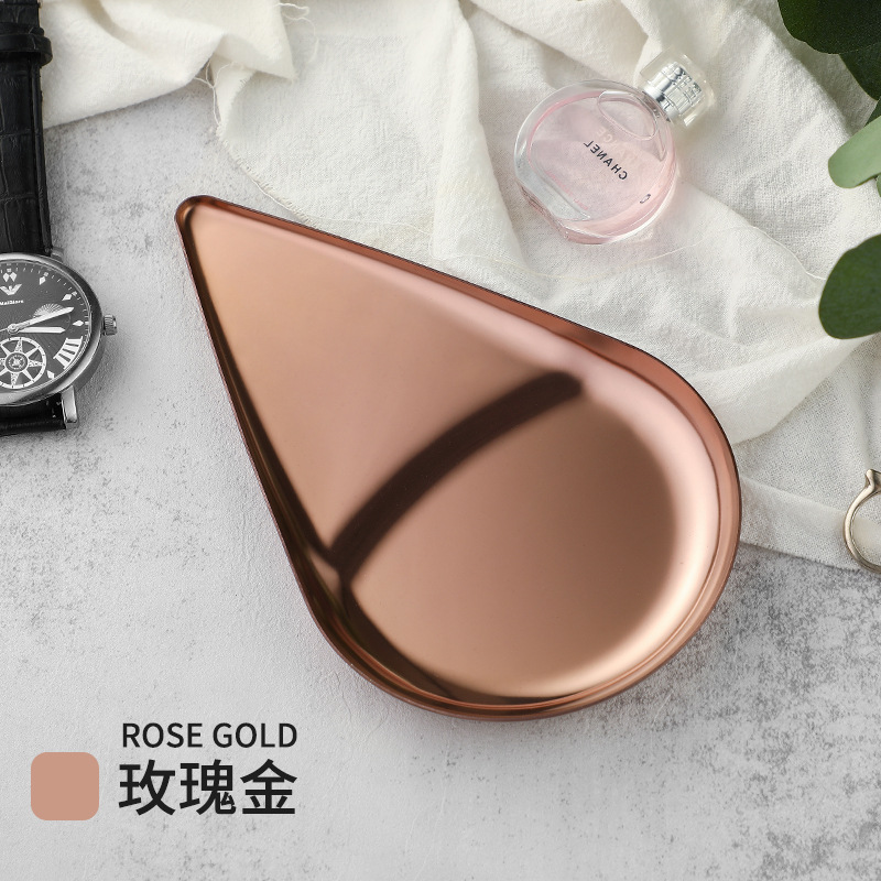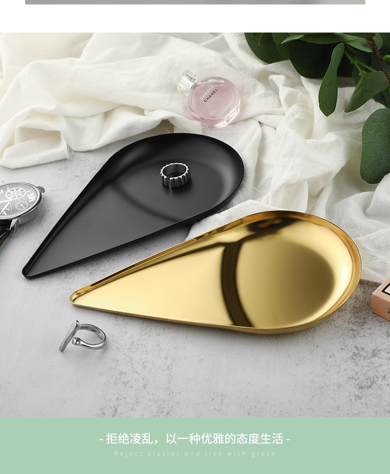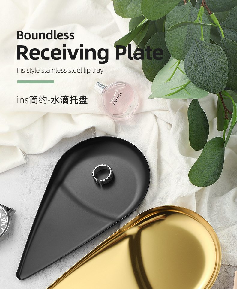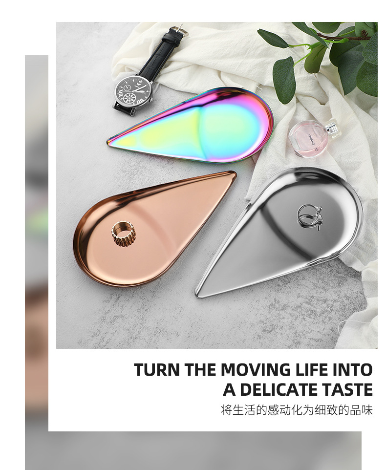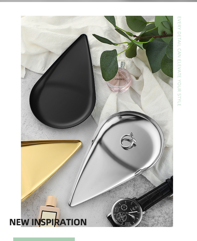 북유럽 인 스테인레스 스틸 물방울 보석 트레이 화장품 금속 플레이트 데스크탑 보관 플레이트 홈 디스펠
