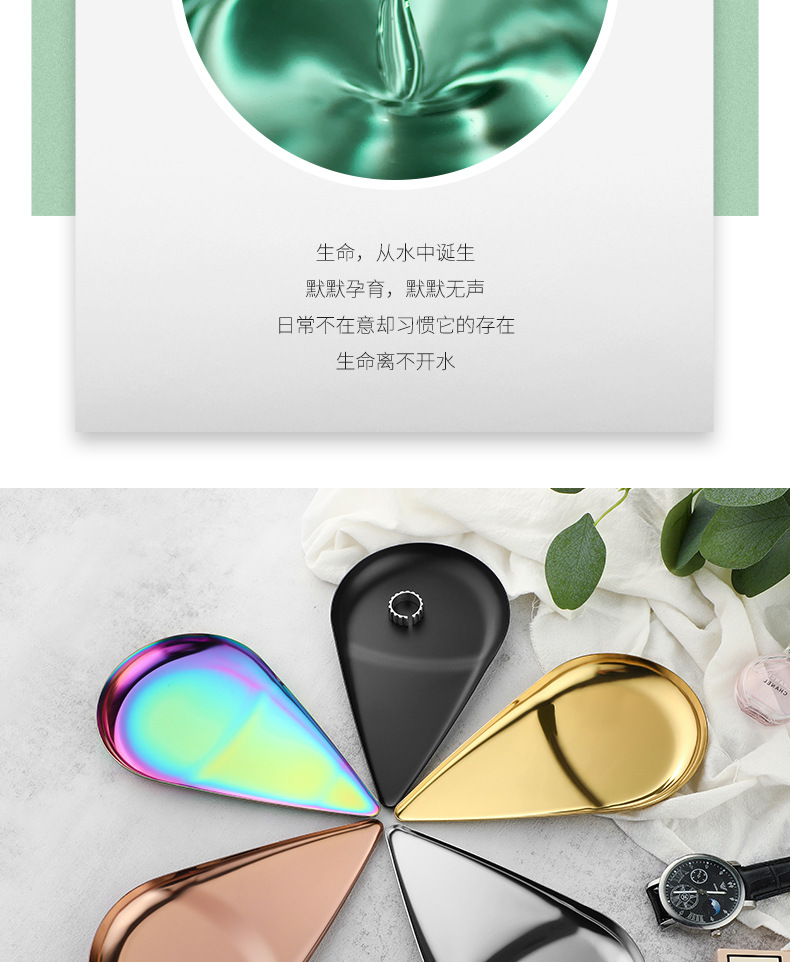 북유럽 인 스테인레스 스틸 물방울 보석 트레이 화장품 금속 플레이트 데스크탑 보관 플레이트 홈 디스펠스토어 가기