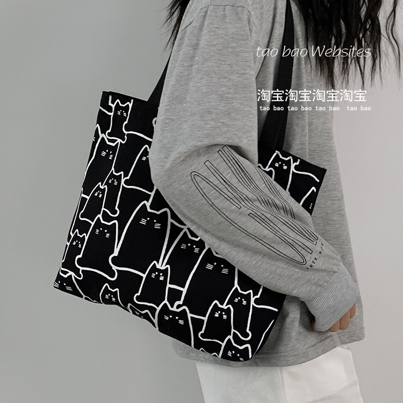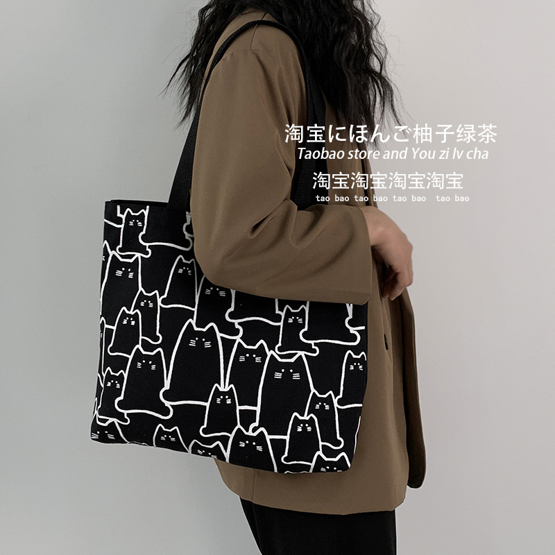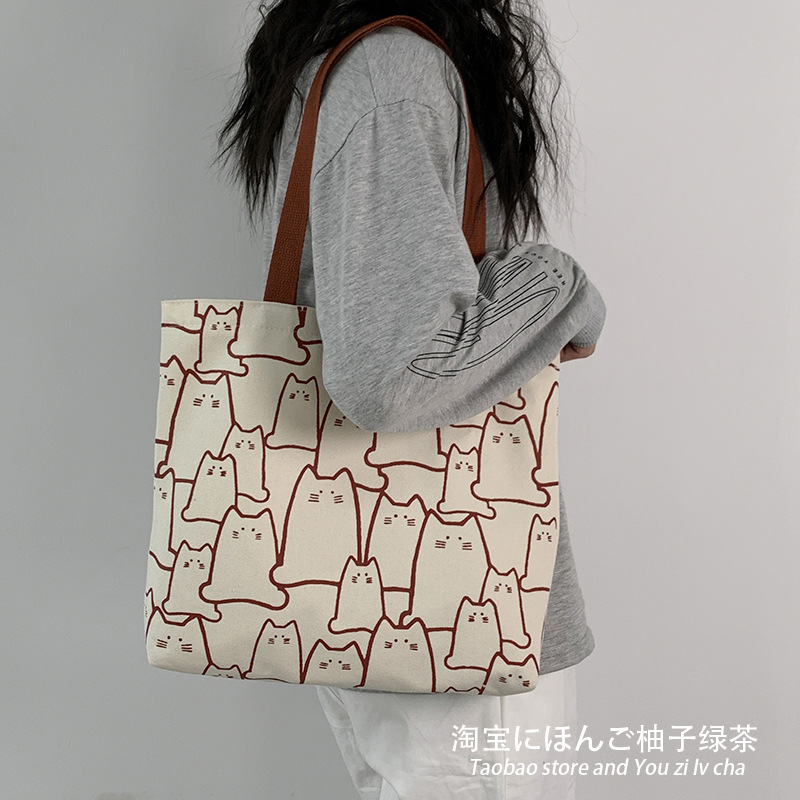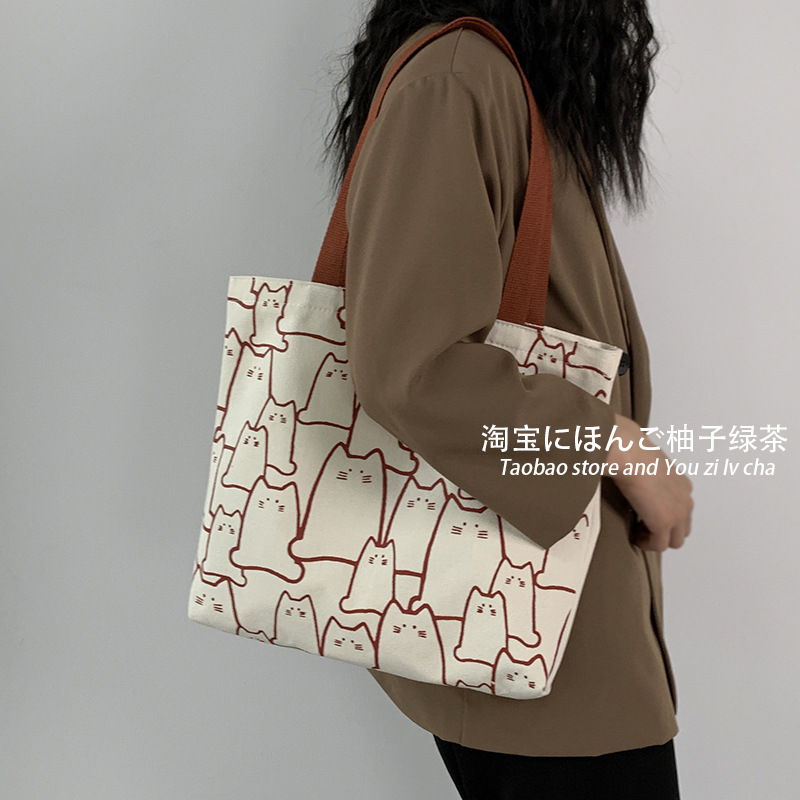 2025 새로운 가방 일본식 한국식 대용량 학생 심플하고 귀여운 문학 숄더백 휴대용 캔버스 가방스토어 가기