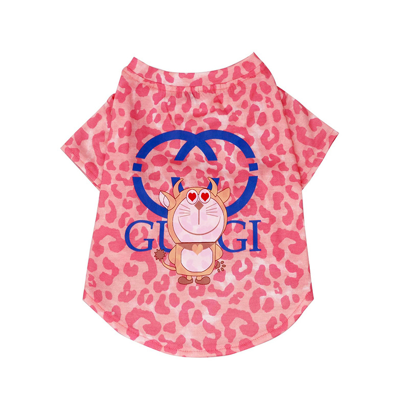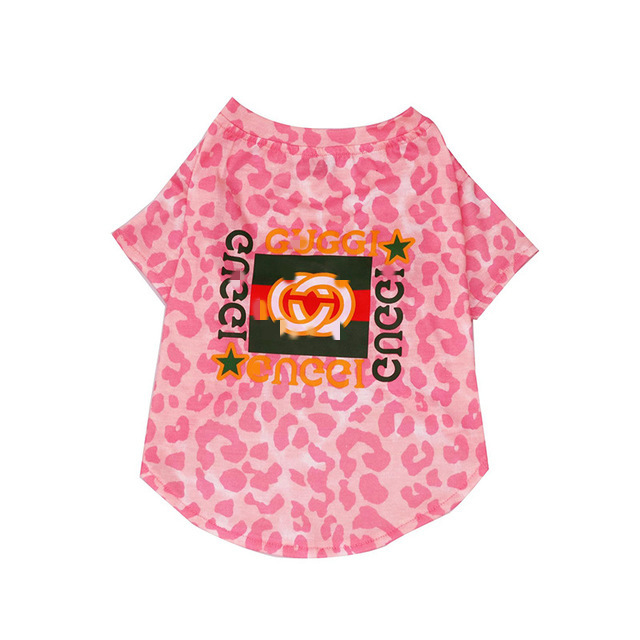 애완 동물 고양이 개 옷 여름 작은 개 옷차림 테디 옷 여름 티셔츠 만화 핑크 레오파드 무늬 얇은스토어 가기