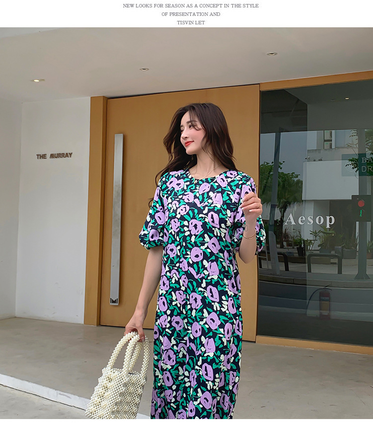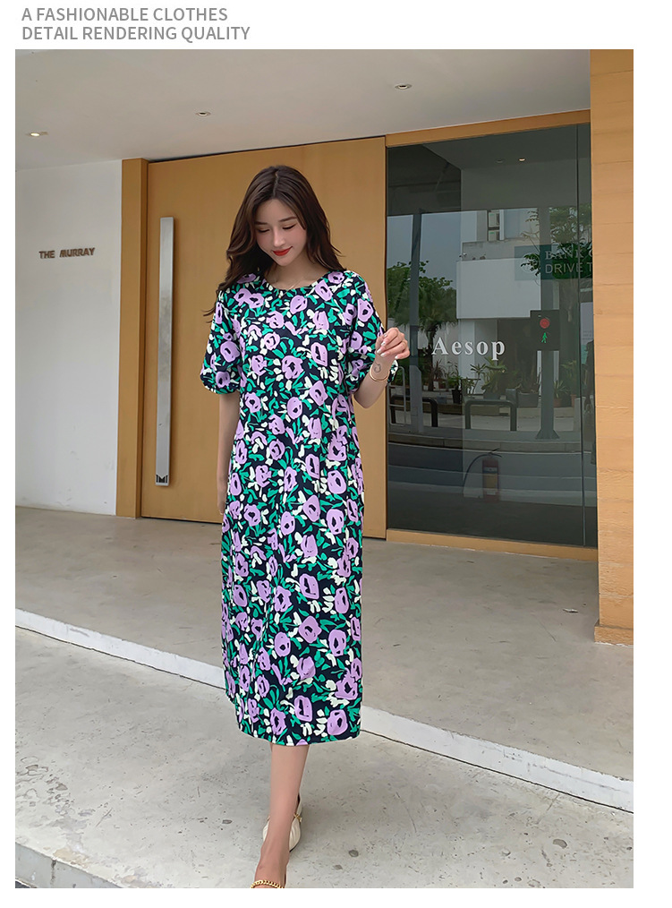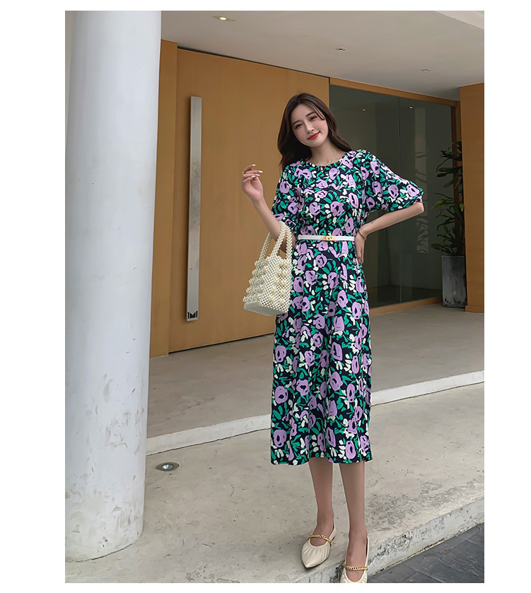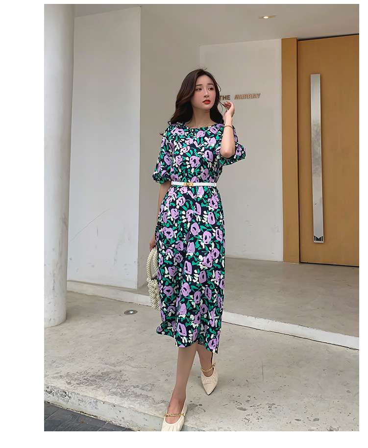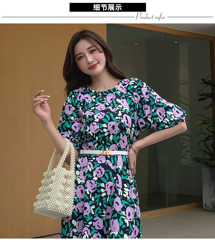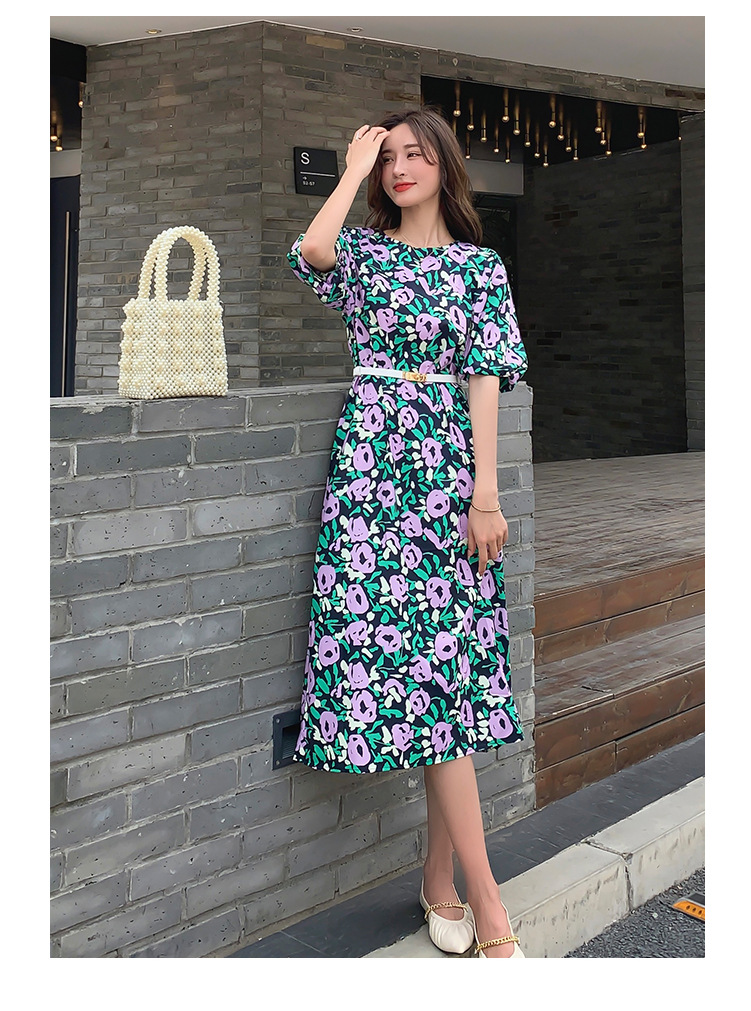 한 펑 섹시한 꽃 원피스 여자의 봄과 여름 허리 슬리밍 우아한 후면 분할 중간 길이 원피스스토어 가기