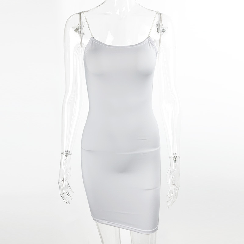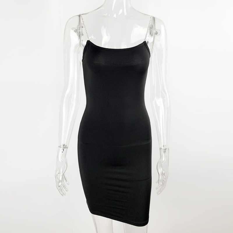 2025년 새로운 여름 스타일 아마존 유럽과 미국 여성의 몸에 꼭 맞는 섹시한 서스펜더 드레스 다이아몬드 체인 백리스 힙 스커트스토어 가기