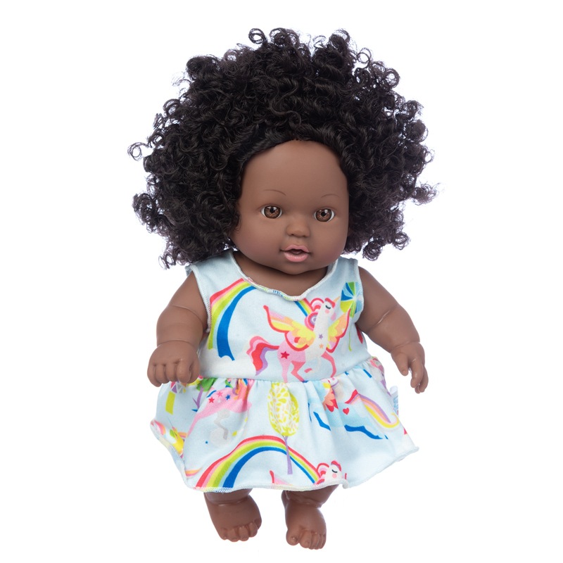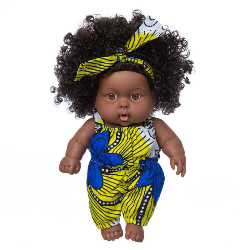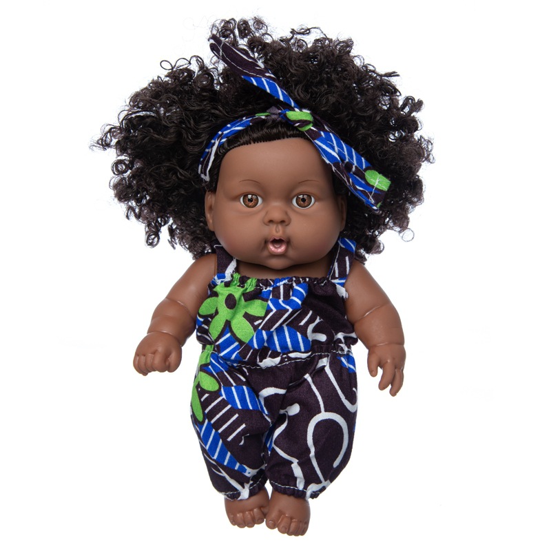 8 인치 폭발 머리 검은 인형 곱슬 인형 아기 장난감 아프리카 흑인 피부 인형 시뮬레이션 아기 인형