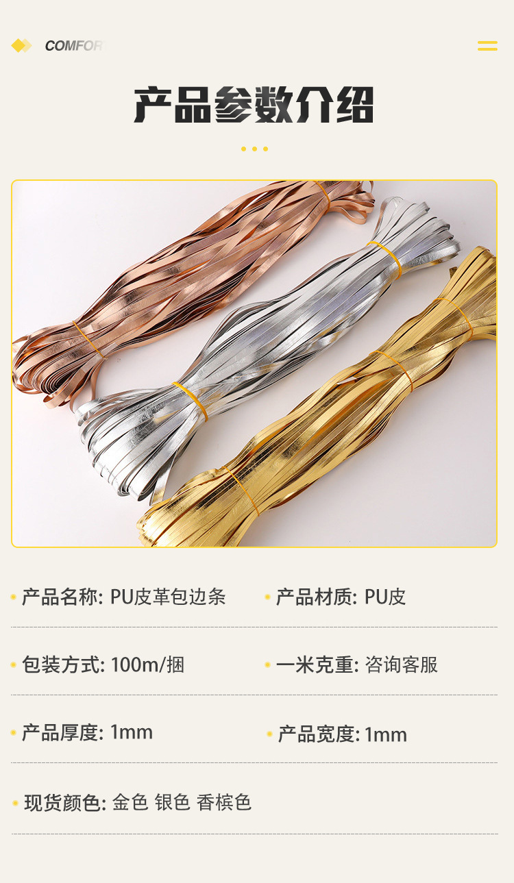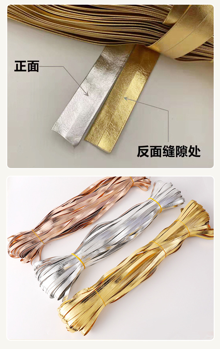 재고 도매 pu 가죽 테두리 스트립 1cm 황금 실버 압력 스트립 베개 테두리 스트립 고대 의류 액세서리