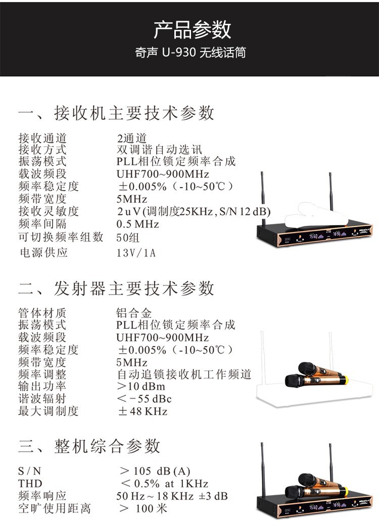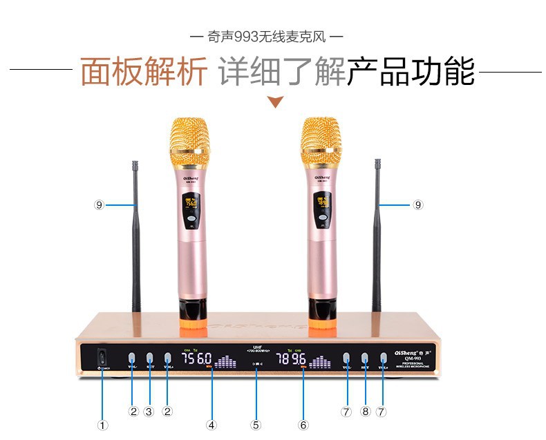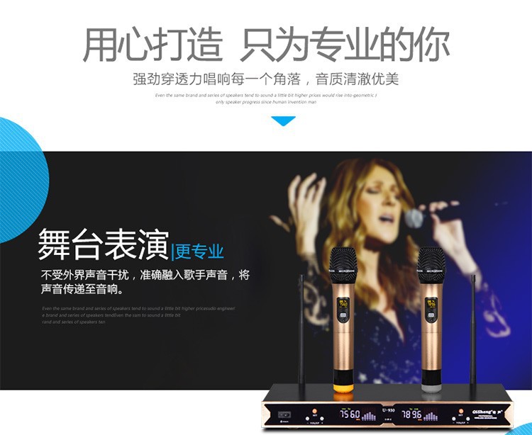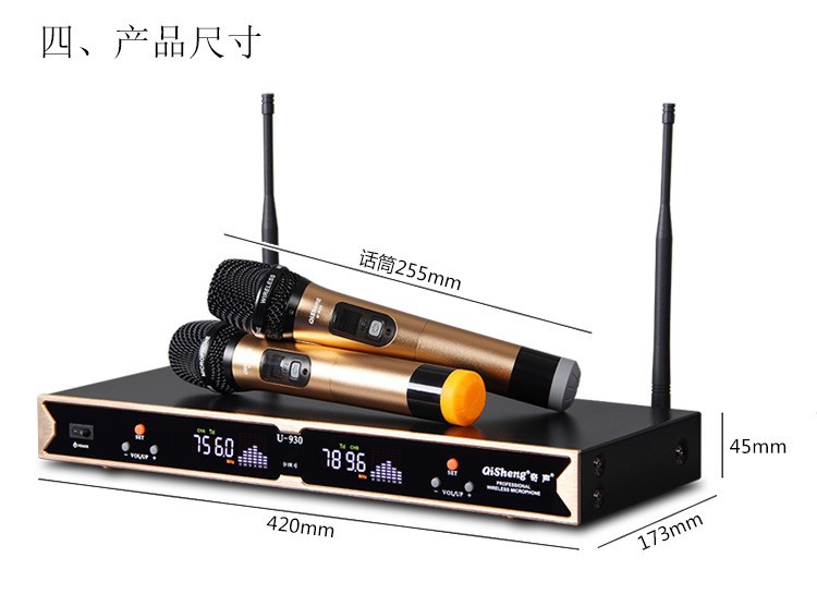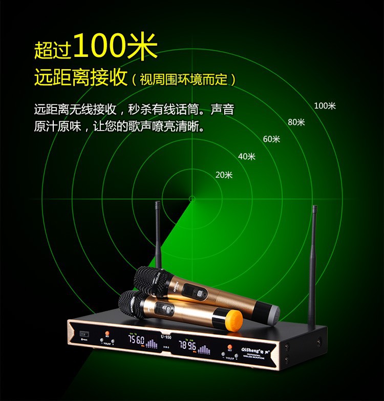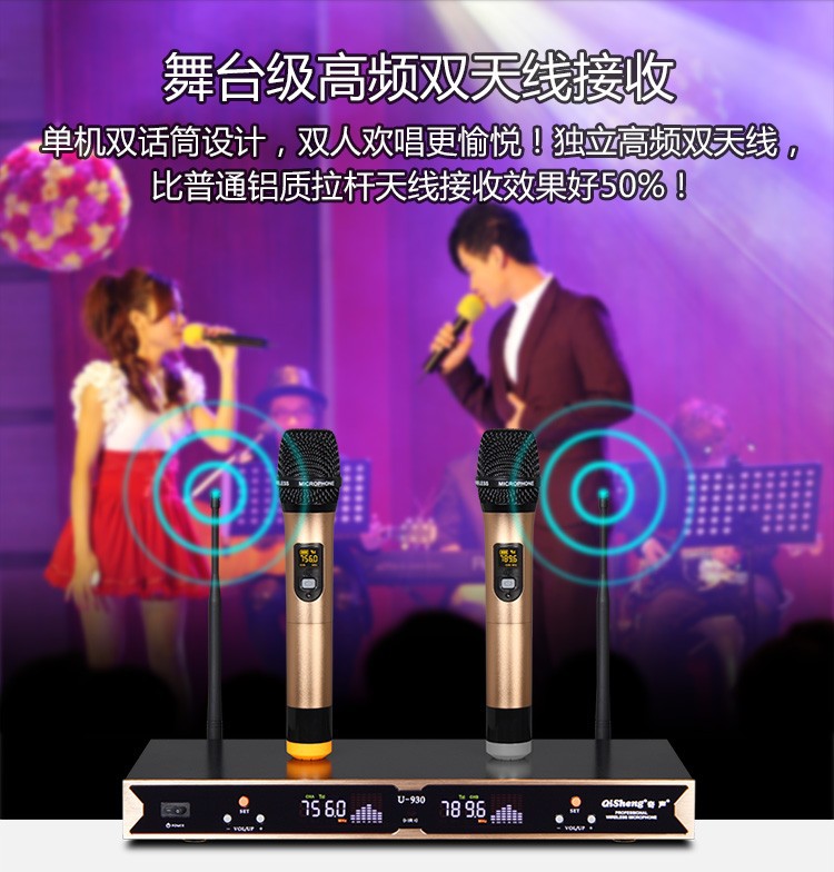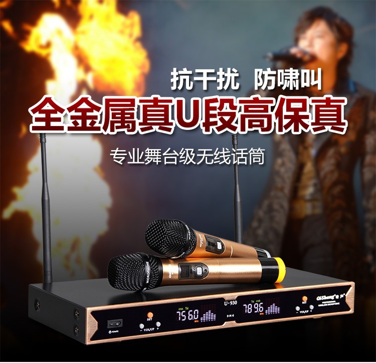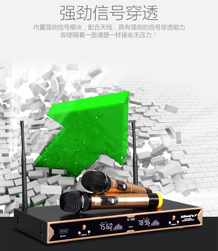 Qi Sheng QM-930 무선 마이크 1 대 2 U 세그먼트 무선 마이크 가족 ktv 웨딩 무대 공연 회의스토어 가기