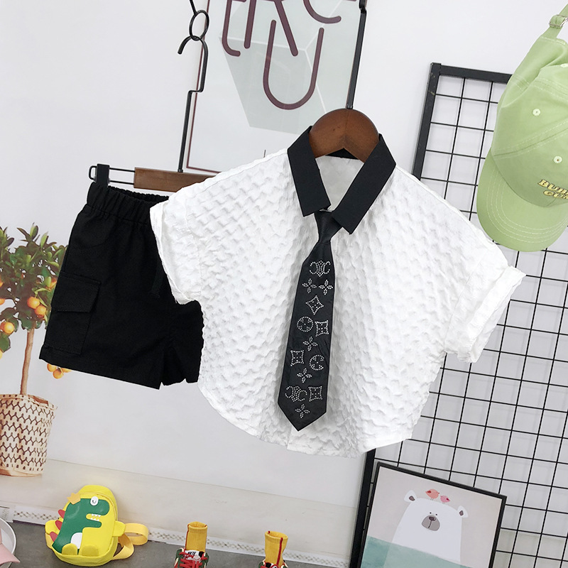 소년 셔츠 여름 반팔 셔츠 어린이 셔츠 중소 어린이 ins 스타일 탑 반바지 캐주얼 정장