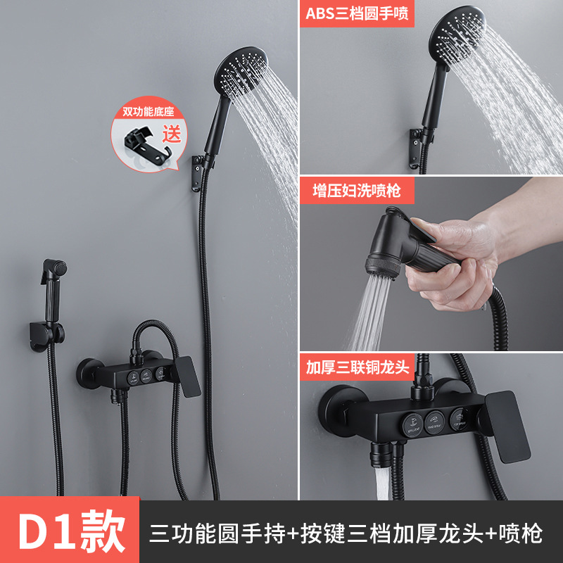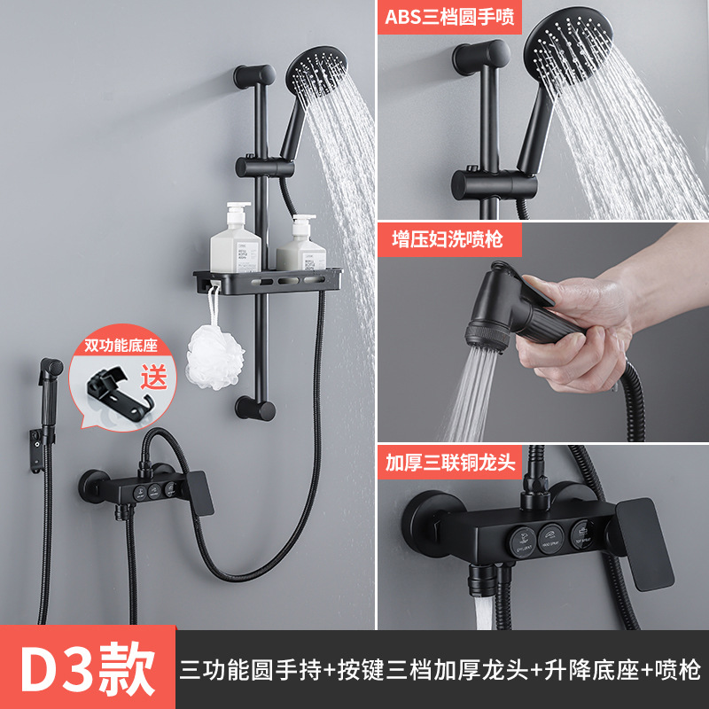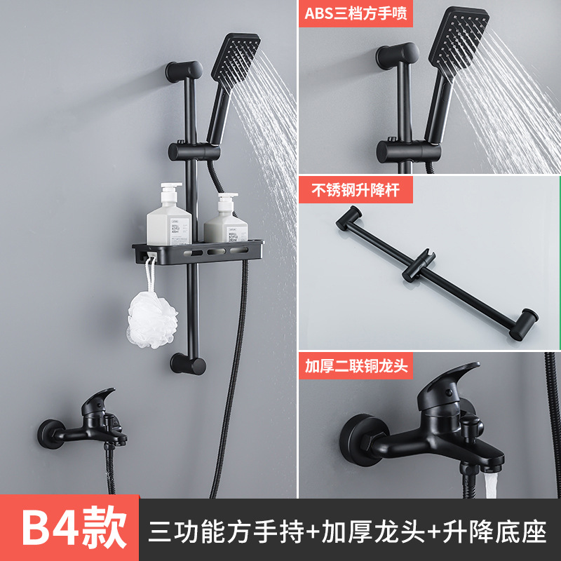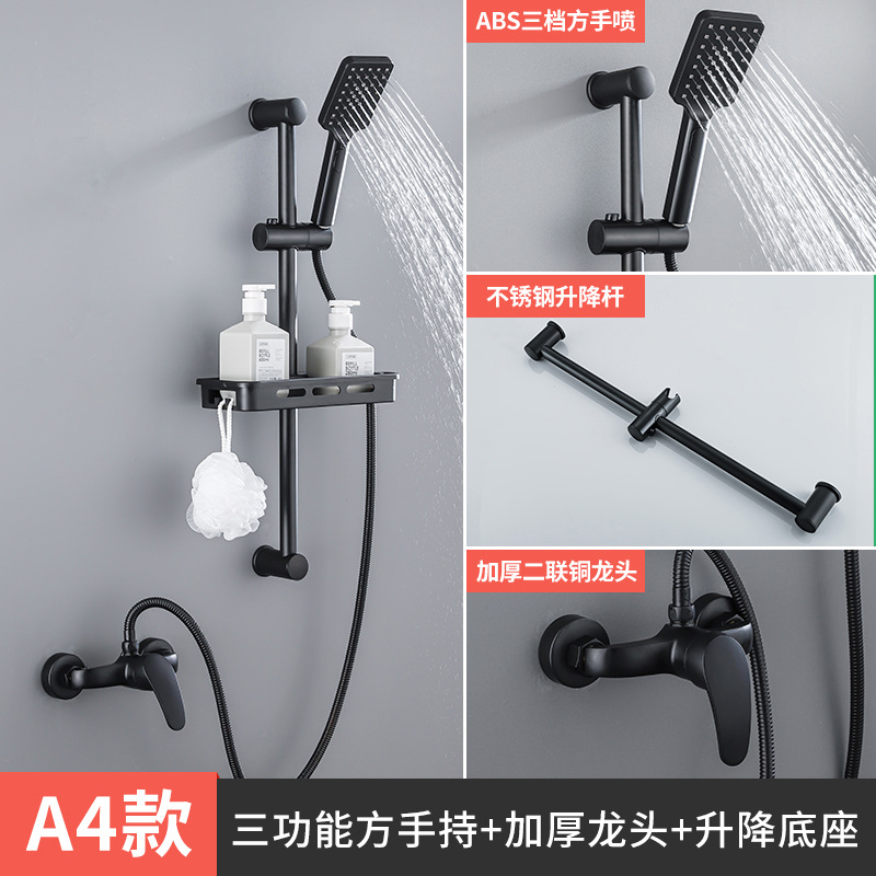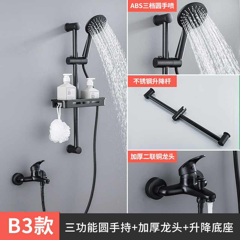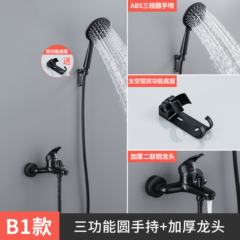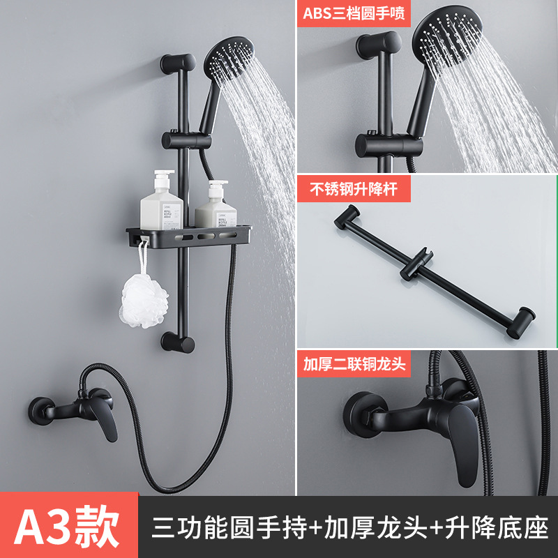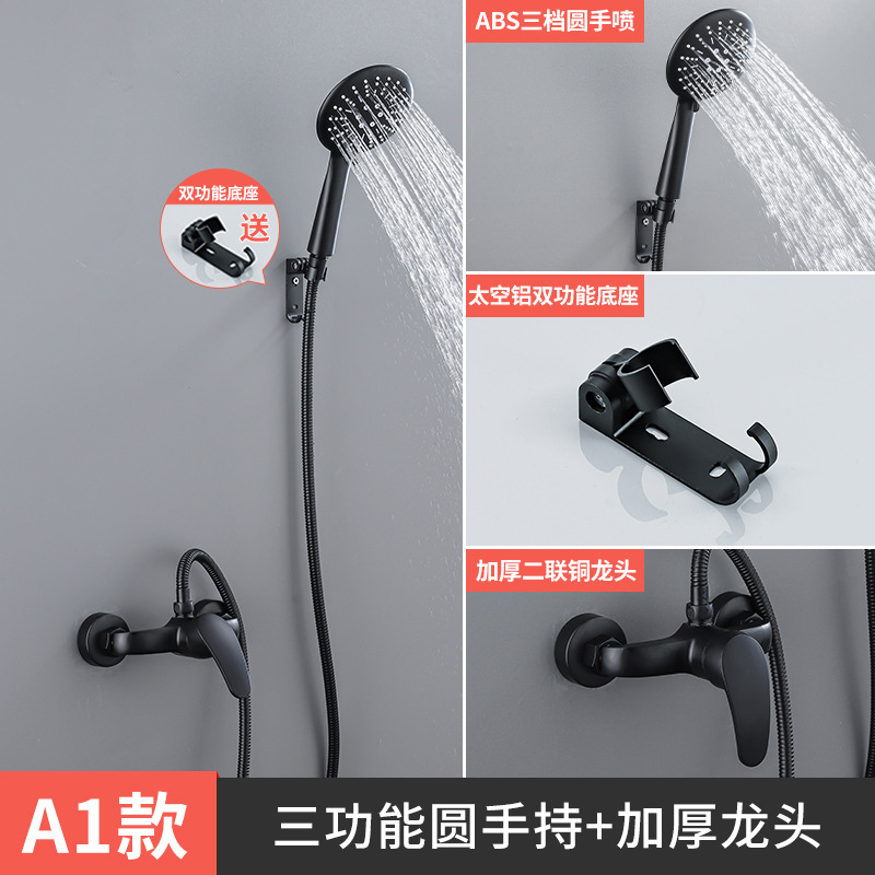 간단한 검은 샤워 세트 가정용 화장실 목욕 비 배수 장치 가압 노즐 벽걸이 간단한 샤워스토어 가기