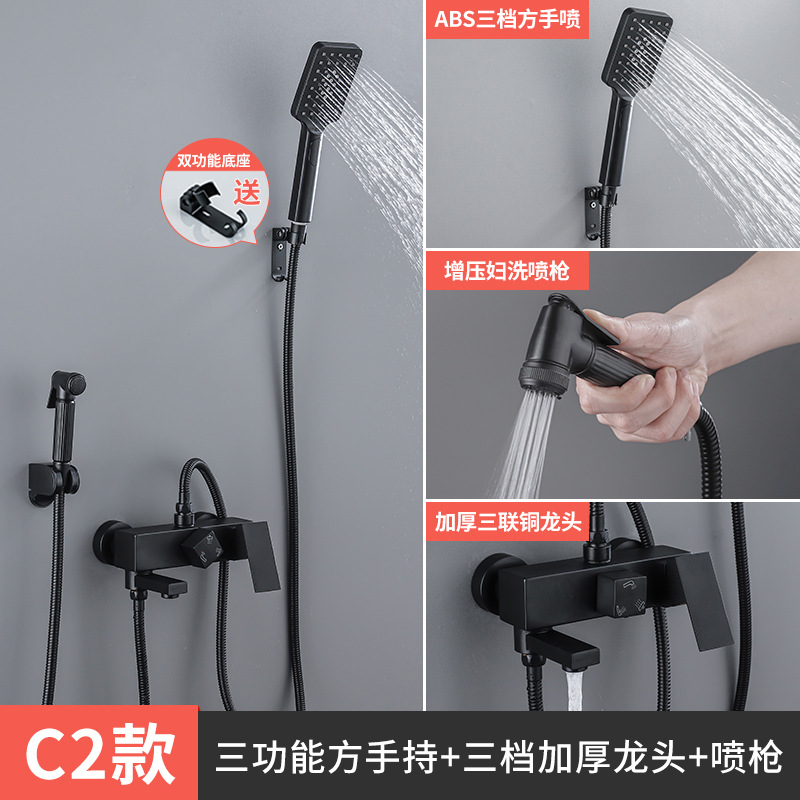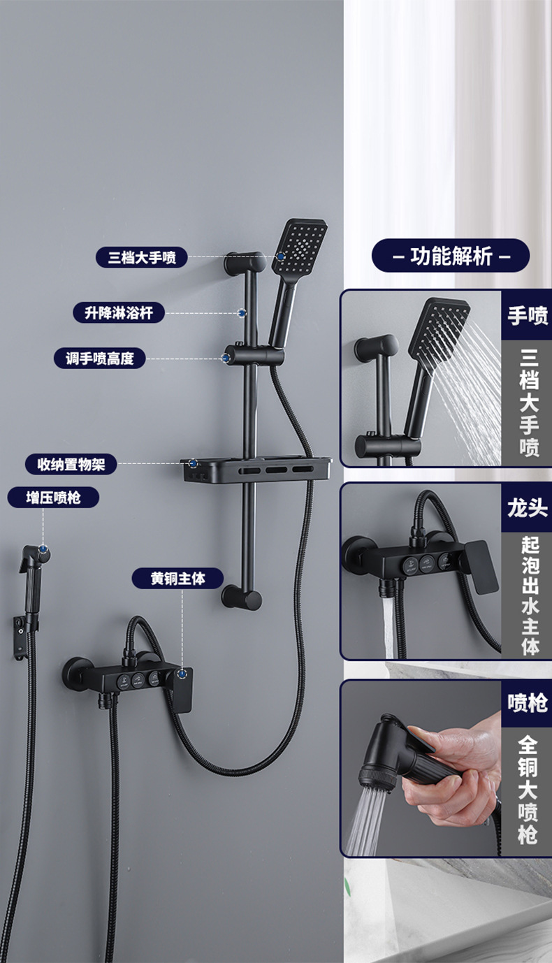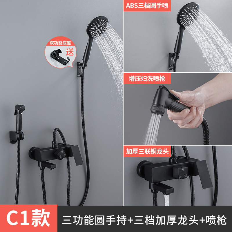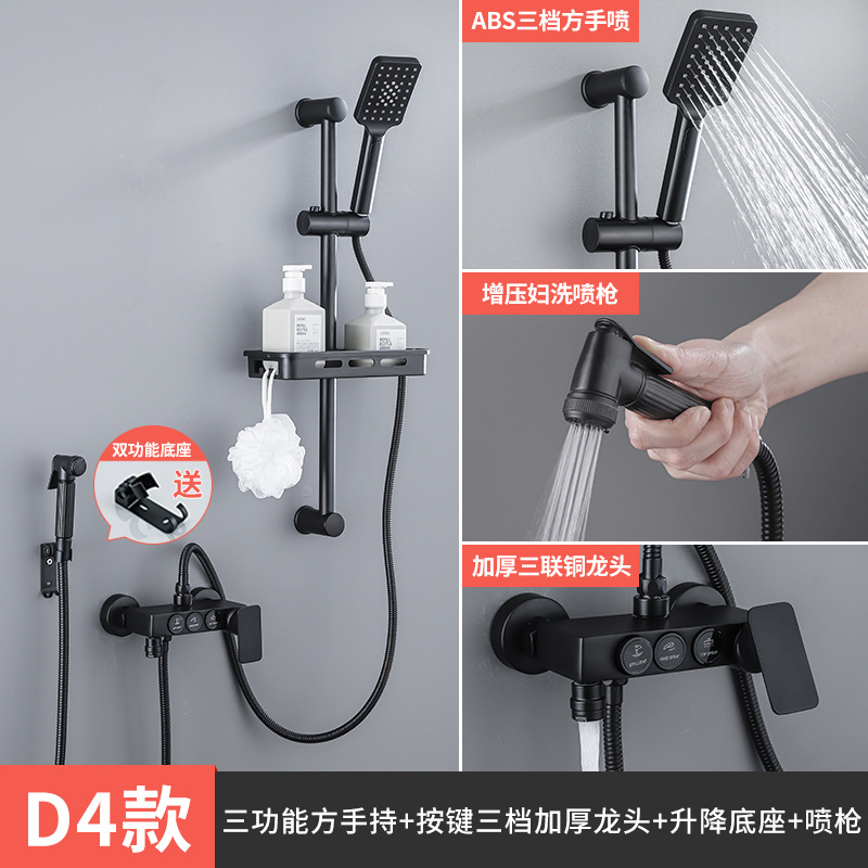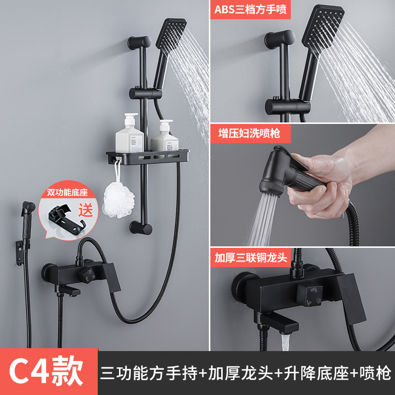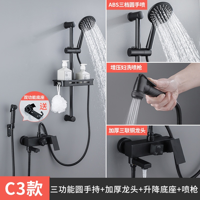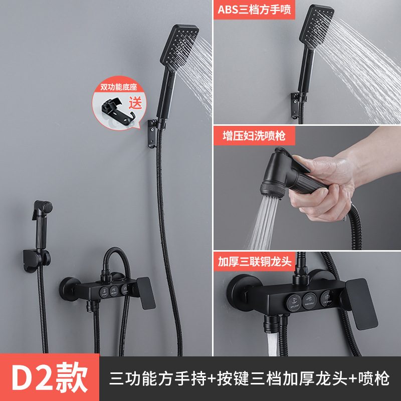 간단한 검은 샤워 세트 가정용 화장실 목욕 비 배수 장치 가압 노즐 벽걸이 간단한 샤워스토어 가기