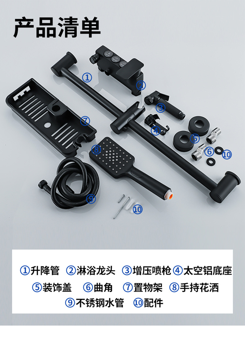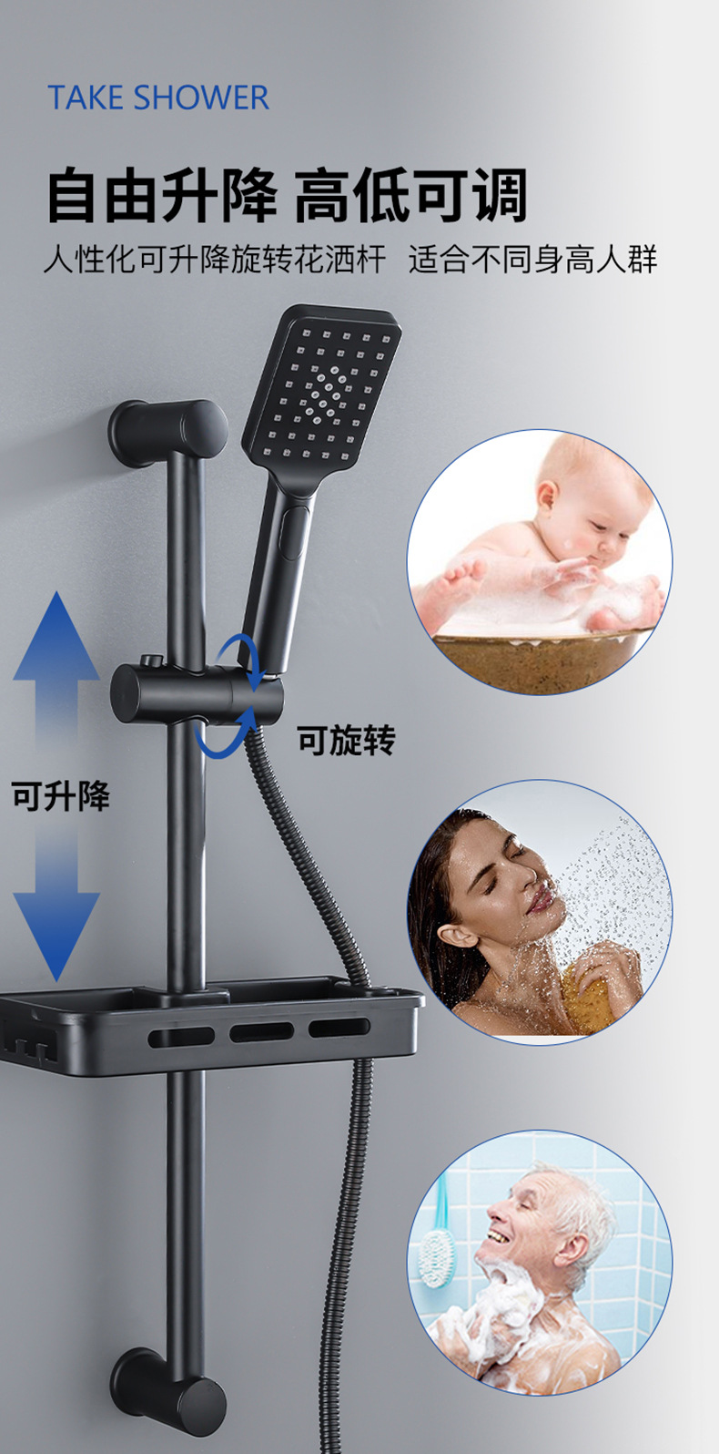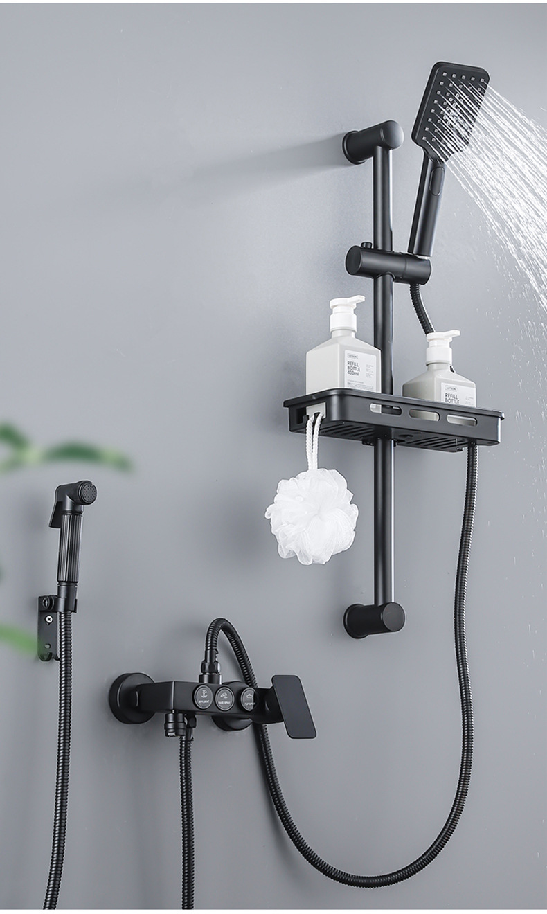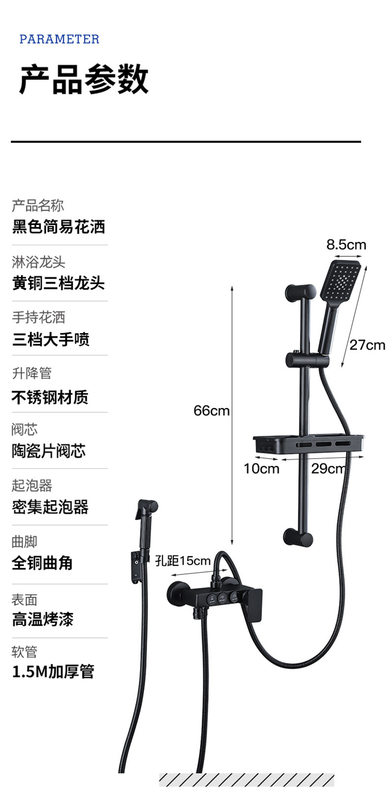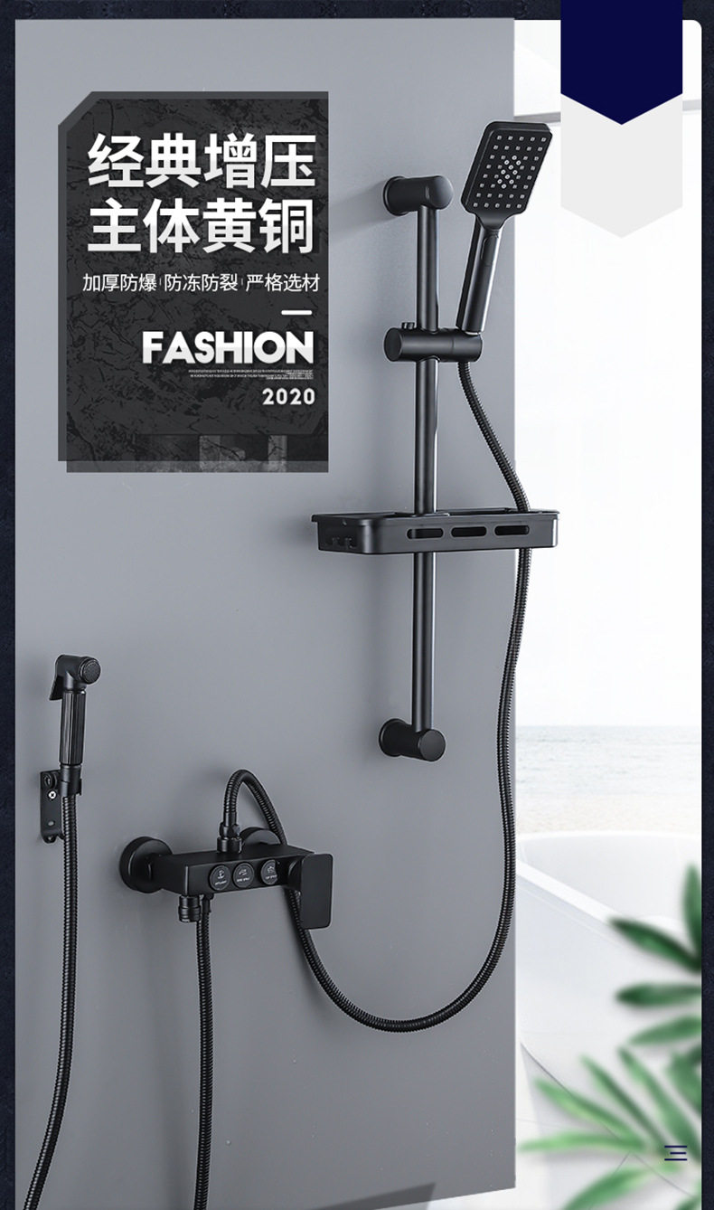 간단한 검은 샤워 세트 가정용 화장실 목욕 비 배수 장치 가압 노즐 벽걸이 간단한 샤워스토어 가기