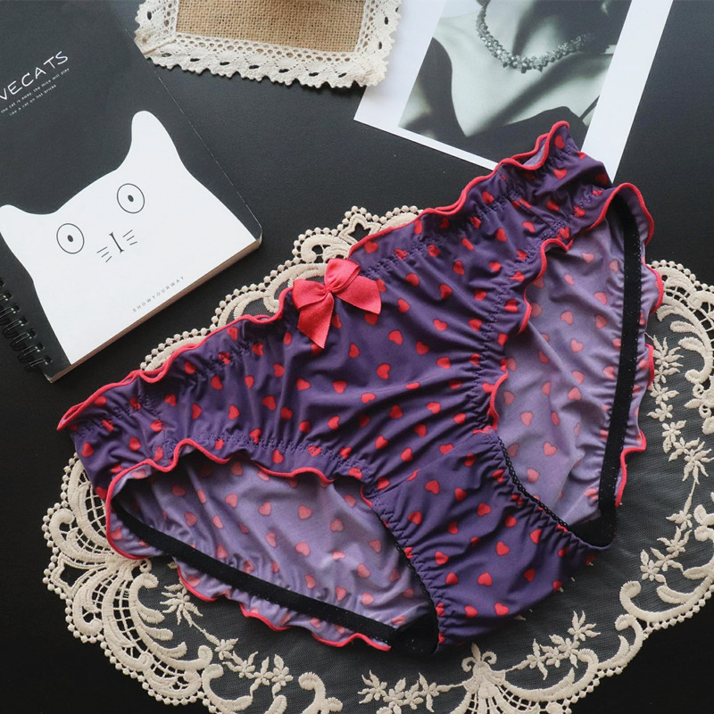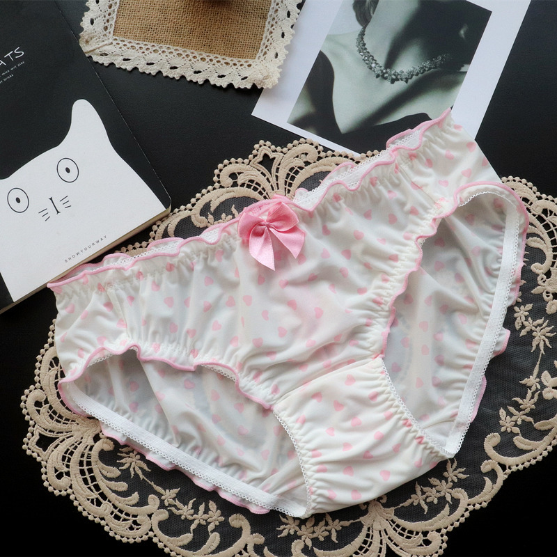 일본 스타일 소녀 사랑 인쇄 아이스 실크 섹시 속옷 여성의 낮은 허리 섹시 중공 여성 바지 통기성 순면 바지스토어 가기