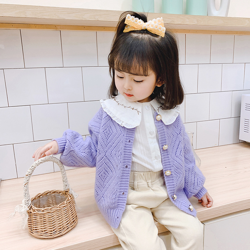 여아용 봄 가디건 2025 봄 가을 신상 스타일리시한 한국판 아기 레트로 니트 스웨터 재킷
