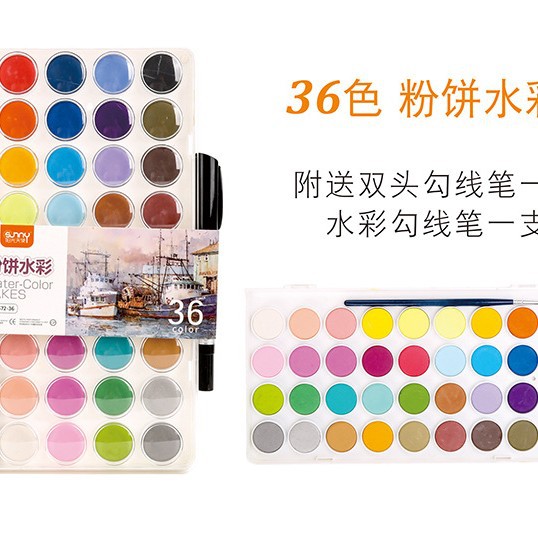 써니 엔젤 파우더 케이크 솔리드 수채화 페인트 단색 휴대용 컬러 팔레트 박스형 수채화 그림 학생스토어 가기