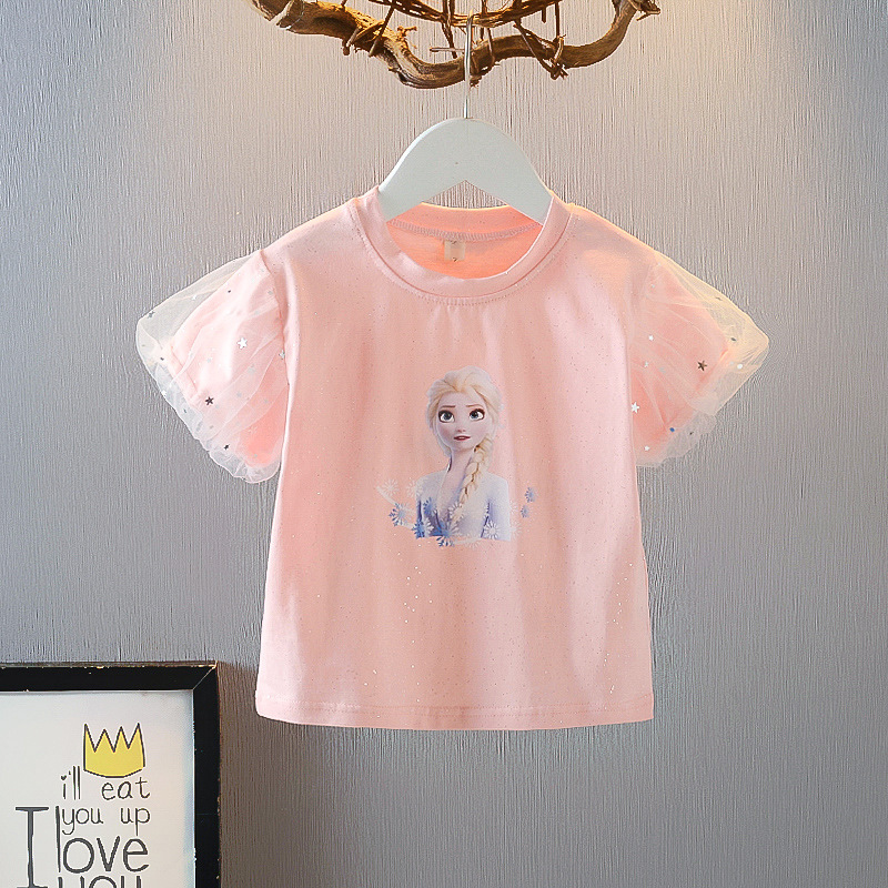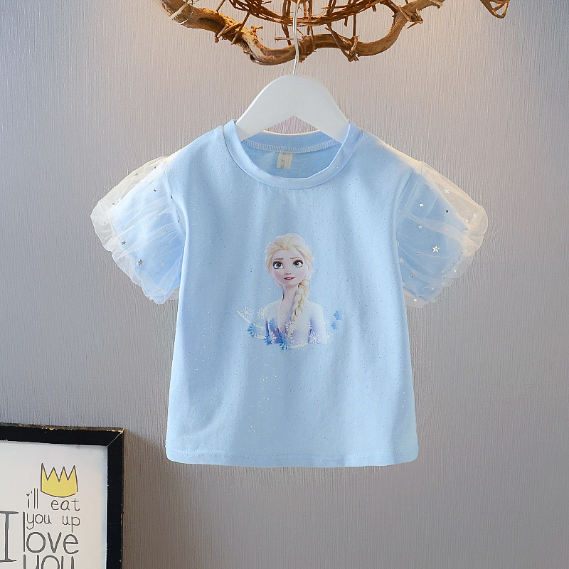 대외 무역 아동 의류 도매 소녀 여름 2025 새로운 엘사 공주 반팔 티셔츠 코튼 퍼프 슬리브 반팔 티셔츠스토어 가기