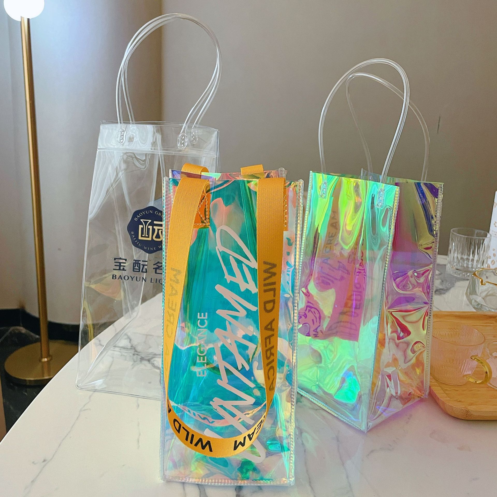 맞춤형 PVC 와인 아이스백 와인 플라스틱 레이저 포장백 선물용 투명 핸드백 해외 인기 상품