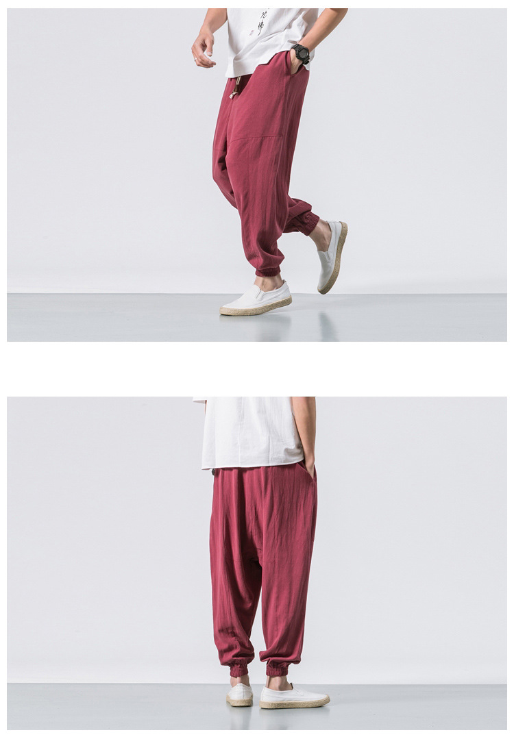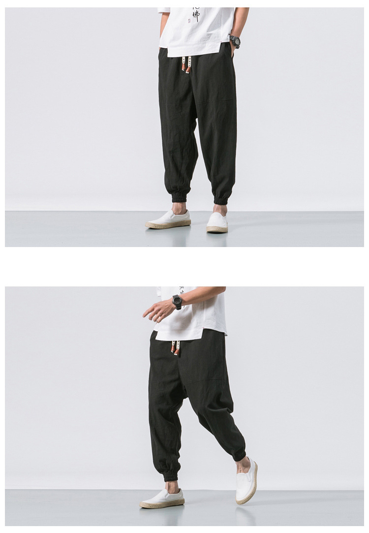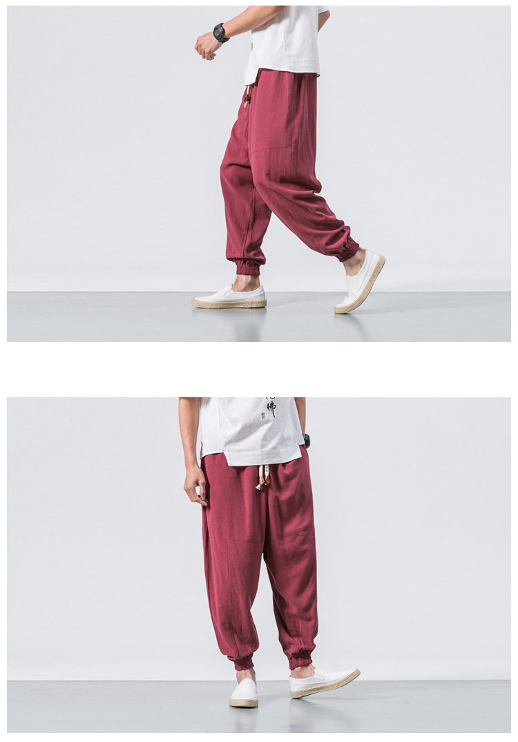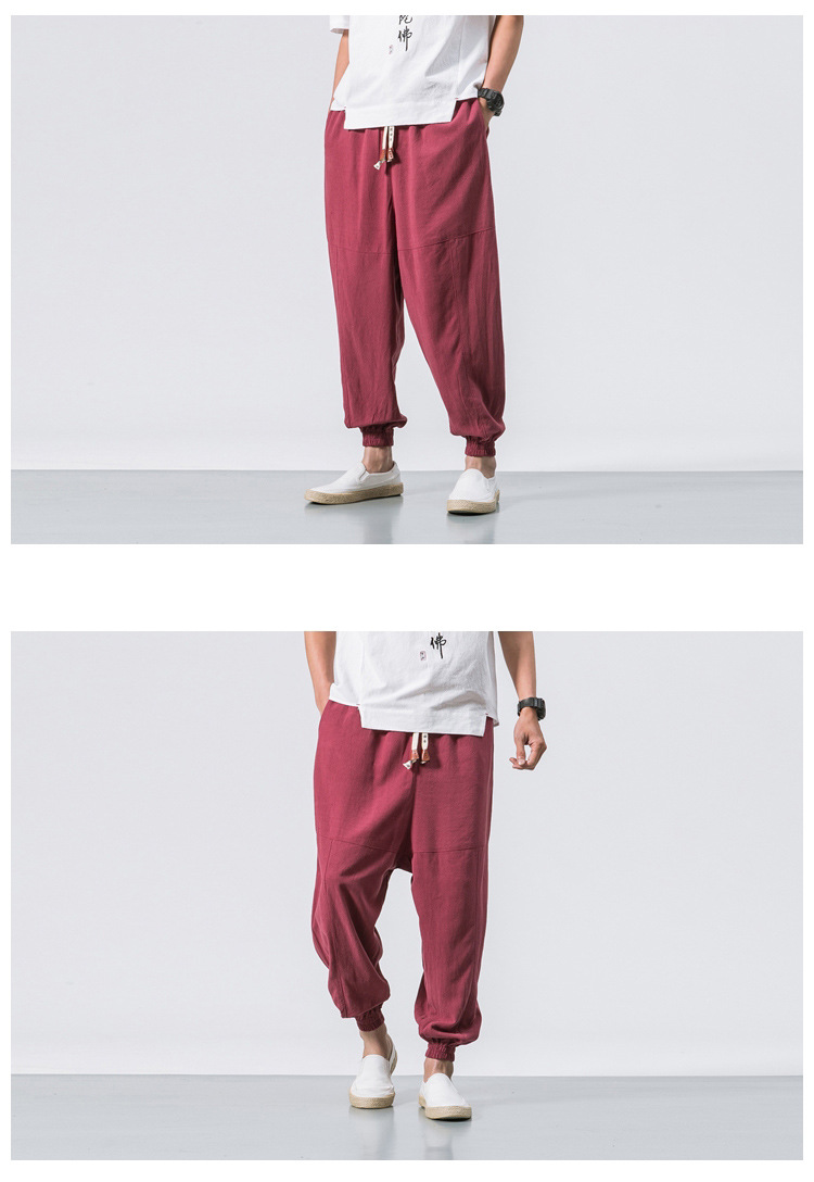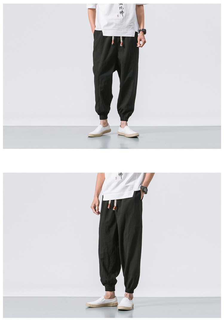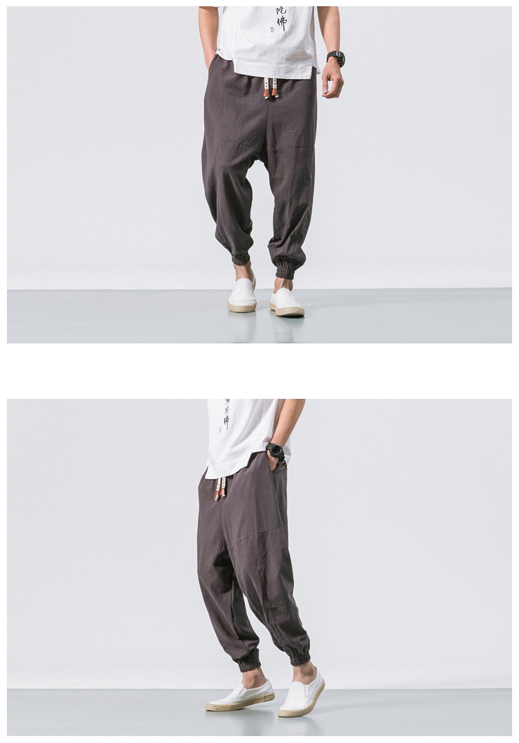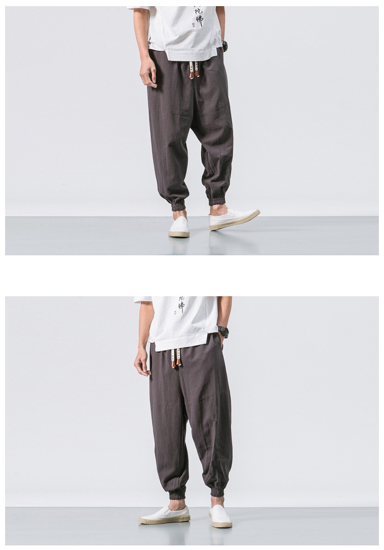 중국 스타일 린넨 바지 남자의 캐주얼 바지 일본 스타일 복고풍 스타일 느슨한 단색 바지 코튼 린넨 바지