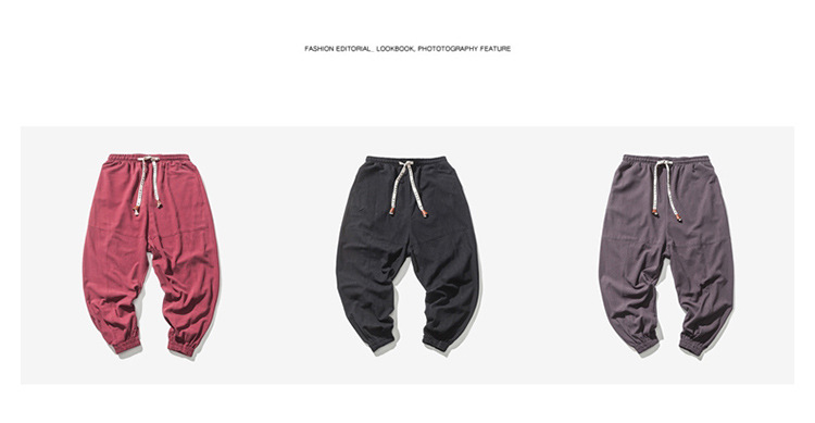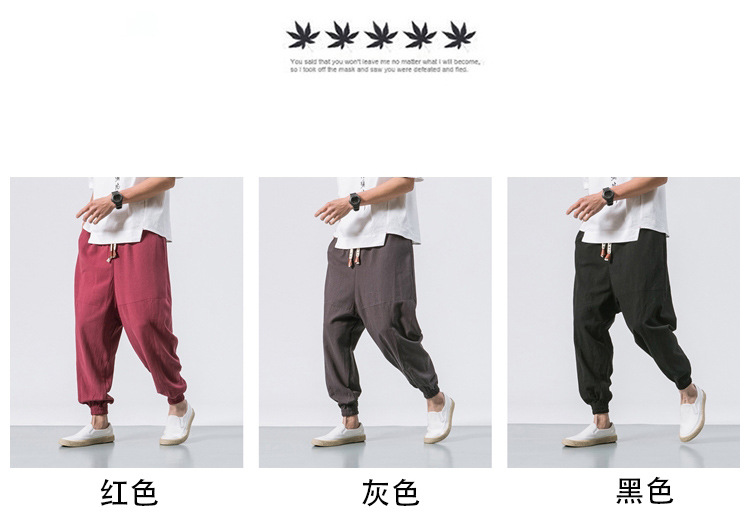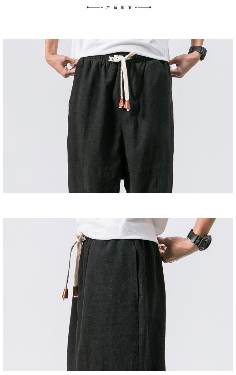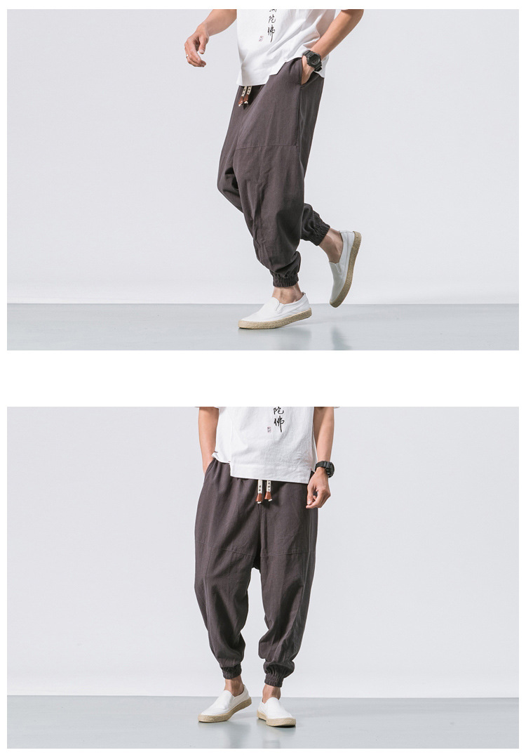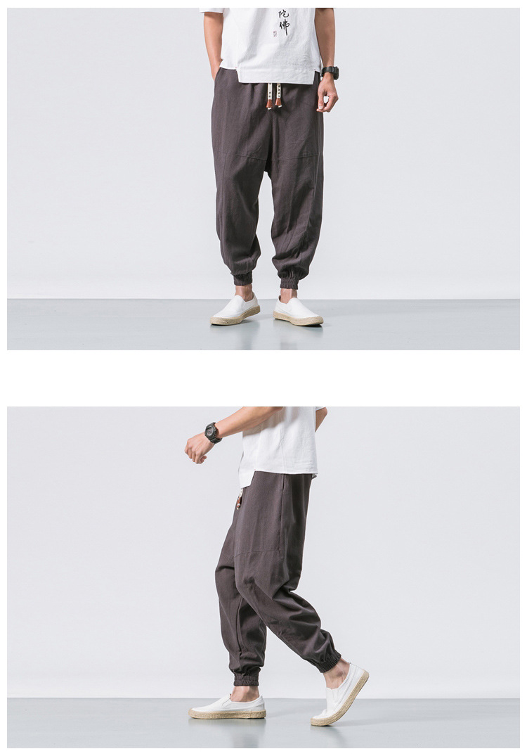 중국 스타일 린넨 바지 남자의 캐주얼 바지 일본 스타일 복고풍 스타일 느슨한 단색 바지 코튼 린넨 바지스토어 가기