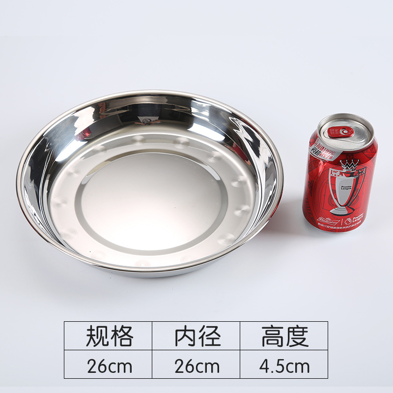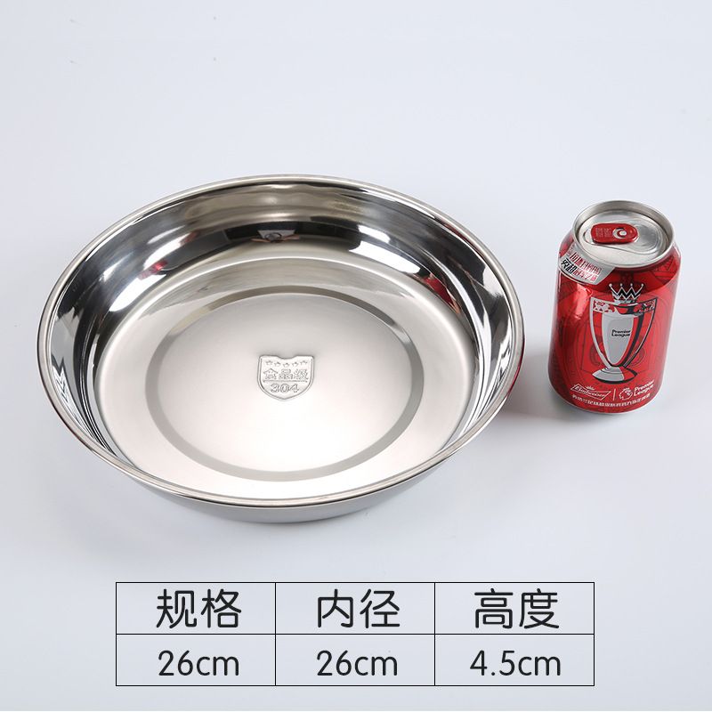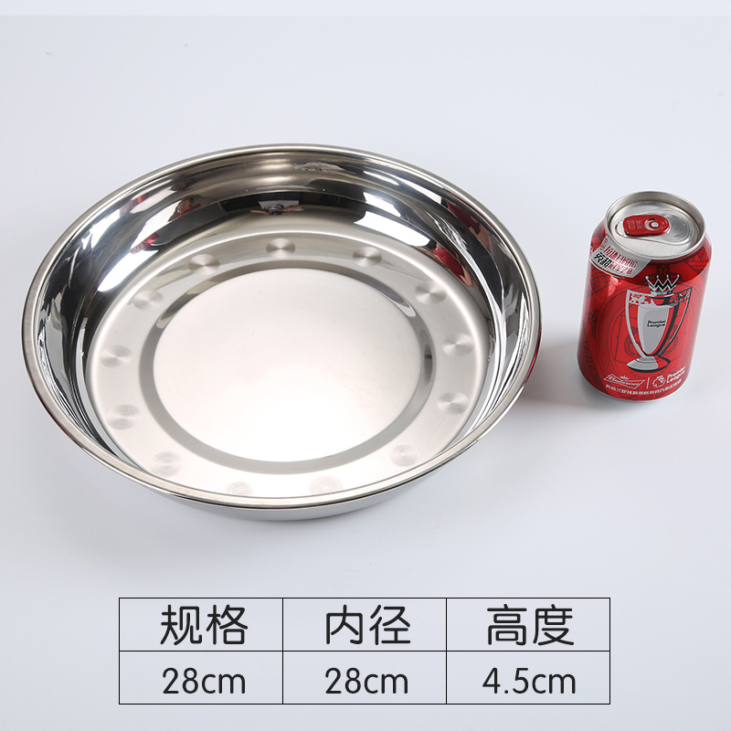 304 스테인레스 스틸 디스크 두꺼운 얕은 접시 가정 접시 레스토랑 플랫 바닥 바베큐 팬스토어 가기