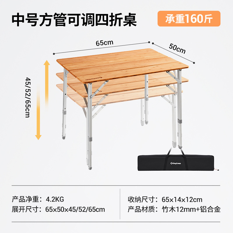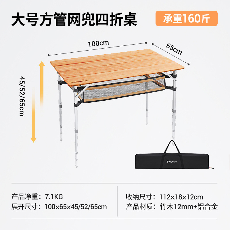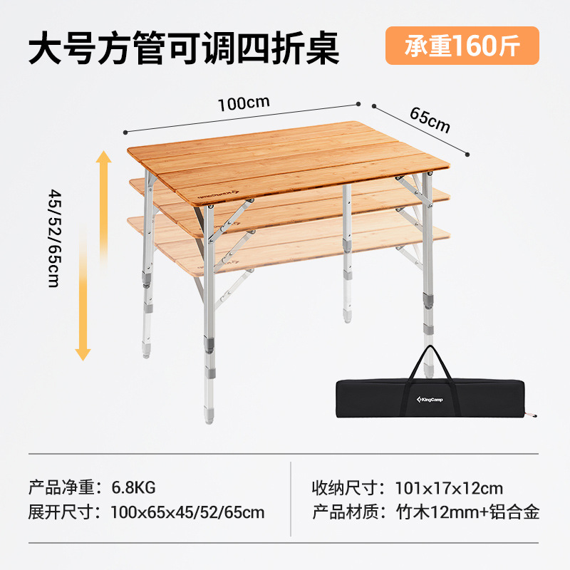 KingCamp 야외 접이식 테이블 대나무 알루미늄 합금 브래킷 4 배 휴대용 캠핑 피크닉 테이블 높이 조절 가능스토어 가기