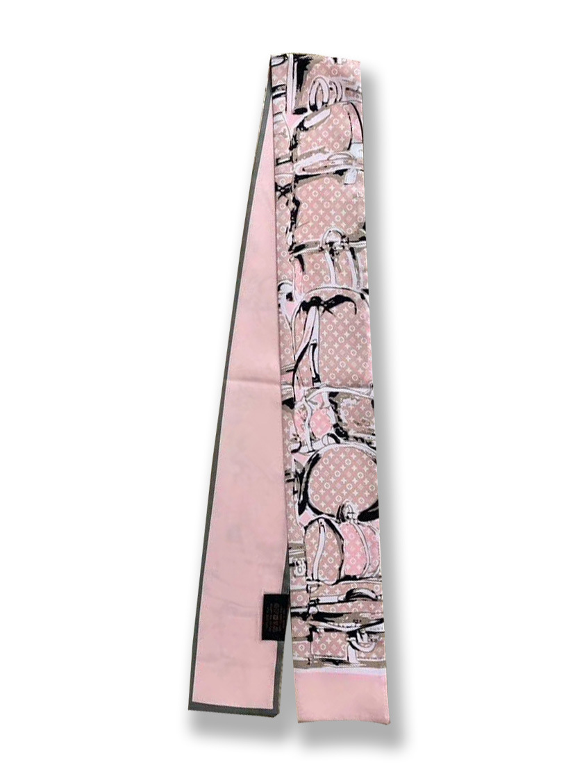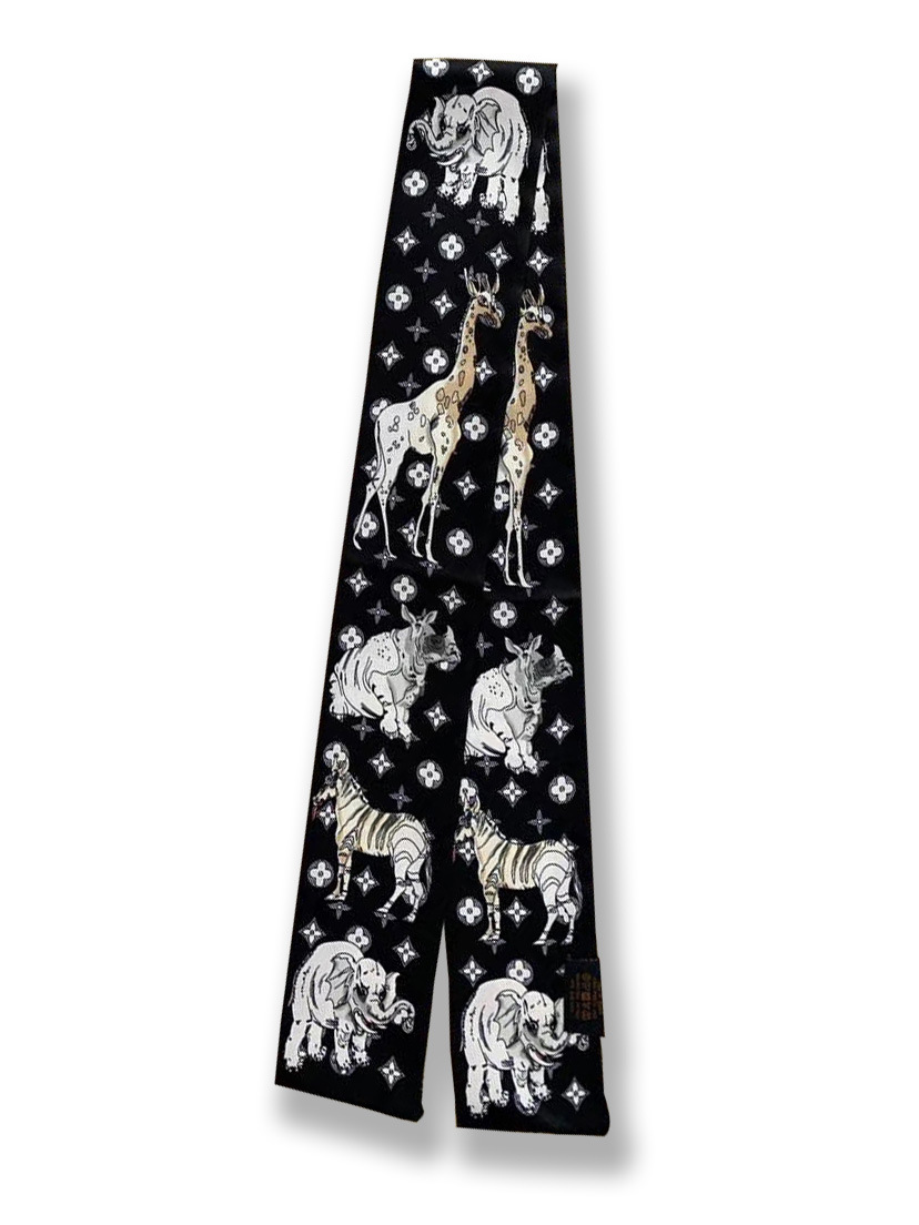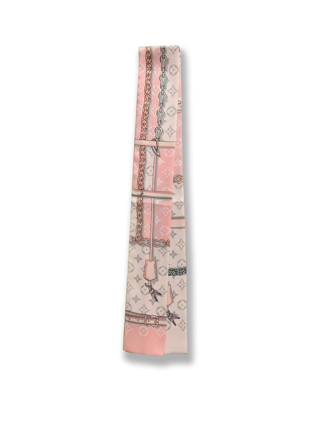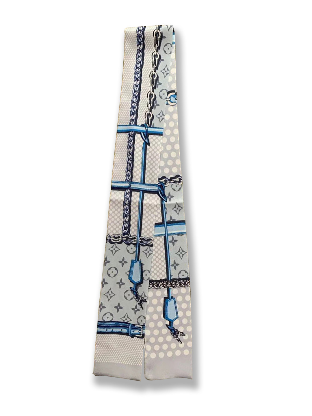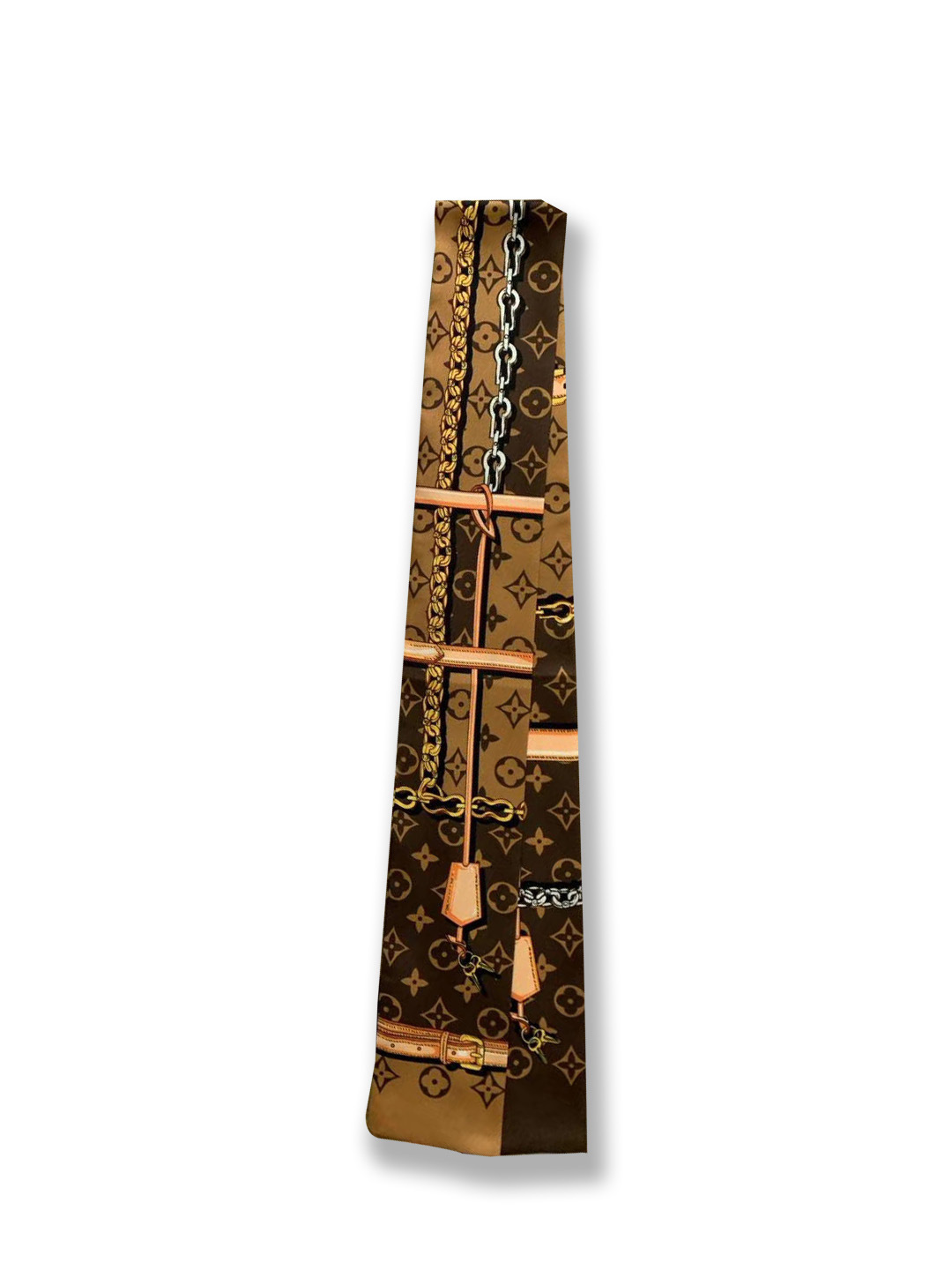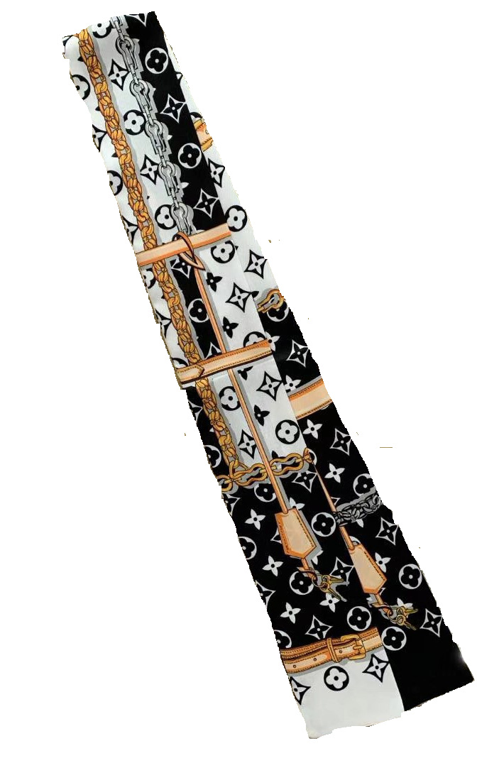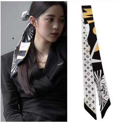 Ouyang Nana 체인 타이 백 실크 스카프 손잡이 장식 큰 브랜드 실크 스카프 작은 리본 헤어 벨트 다크 브라운 스카프 Presbyted 꽃
