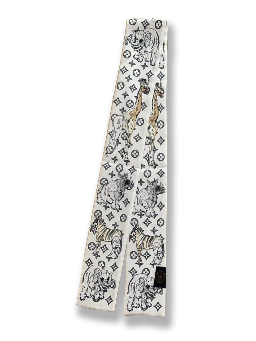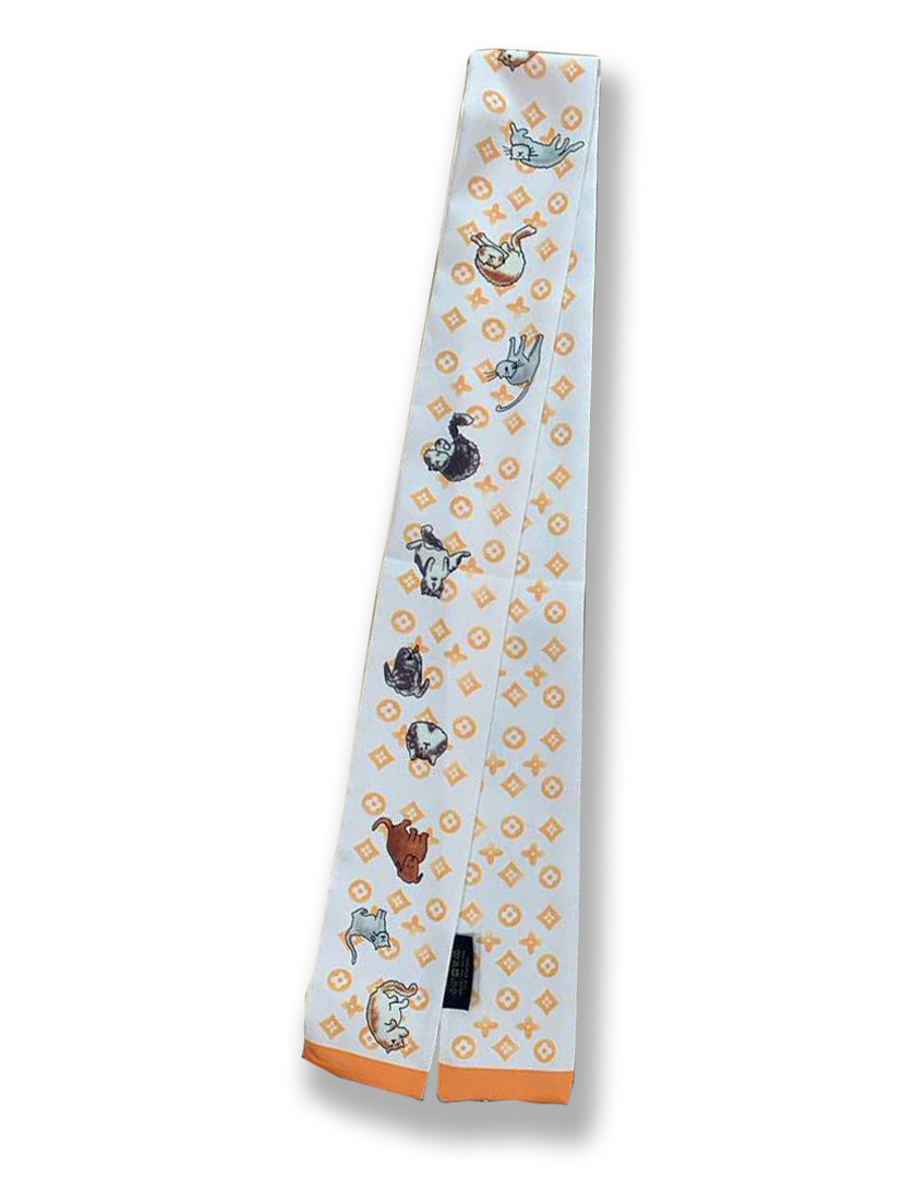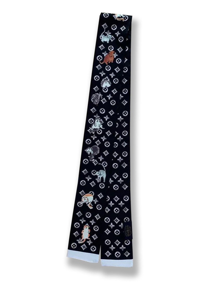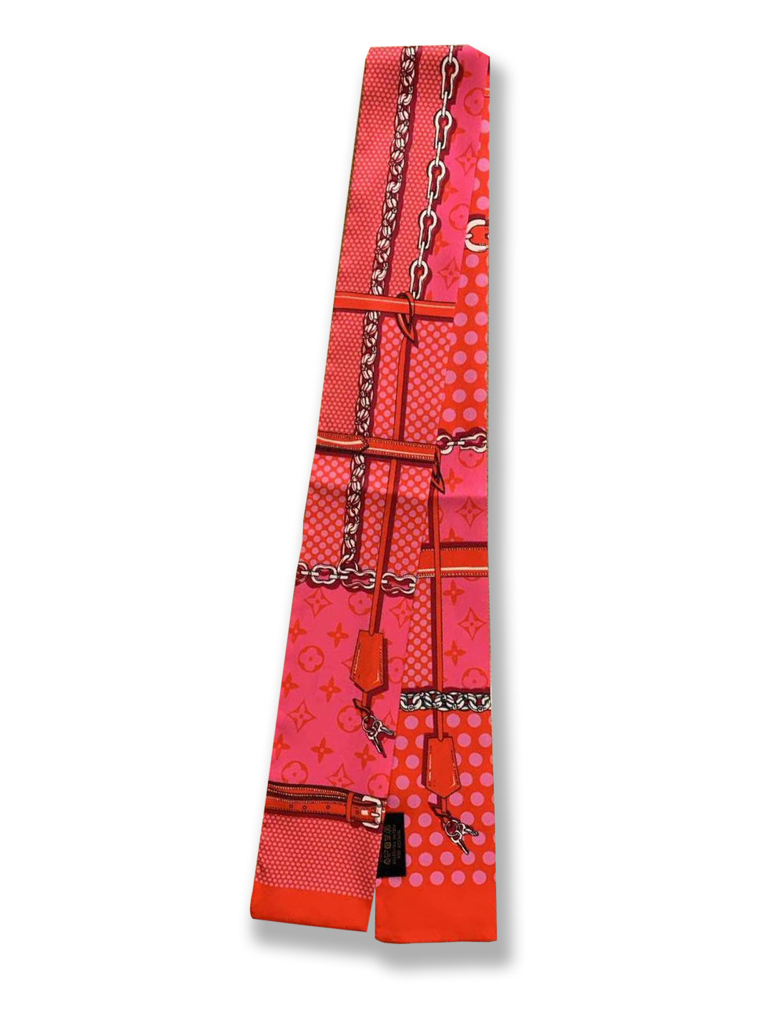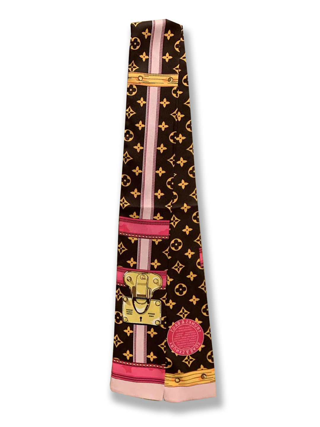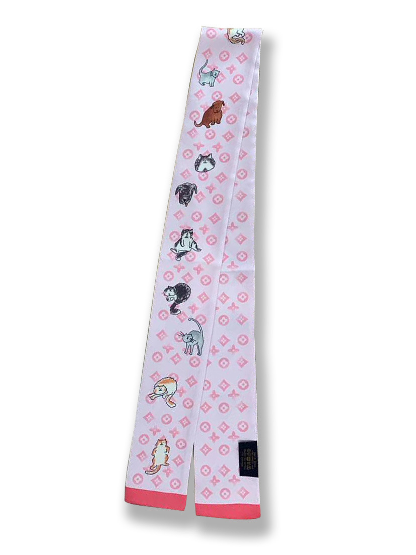 Ouyang Nana 체인 타이 백 실크 스카프 손잡이 장식 큰 브랜드 실크 스카프 작은 리본 헤어 벨트 다크 브라운 스카프 Presbyted 꽃