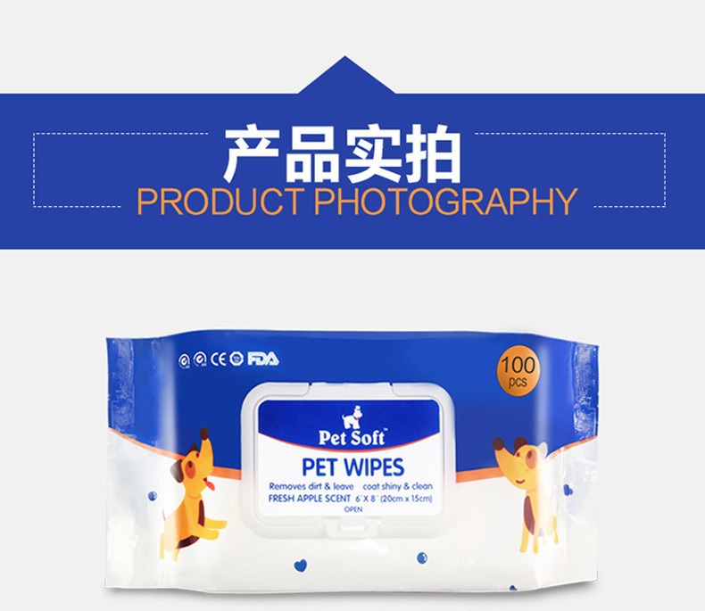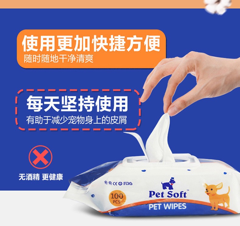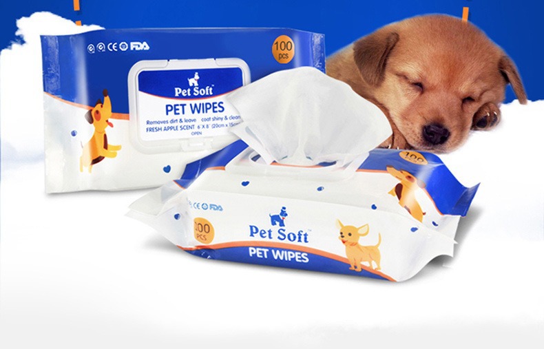 고양이와 개를위한 Petsoft 애완 동물 특수 물티슈 냄새를 제거하는 특수 물티슈 개 엉덩이 뜨거운 물티슈 100 개