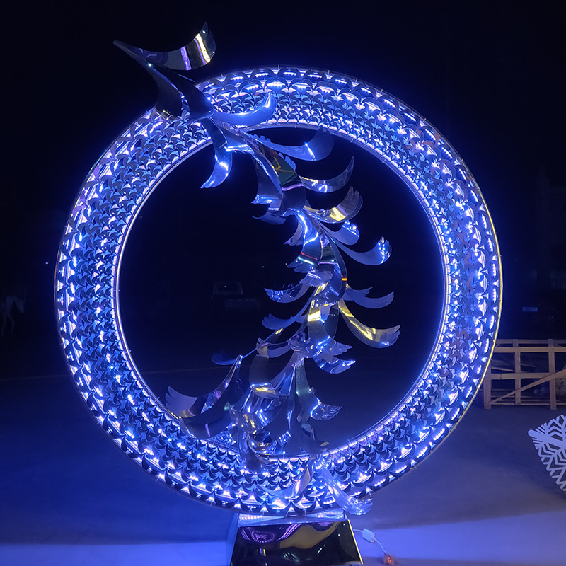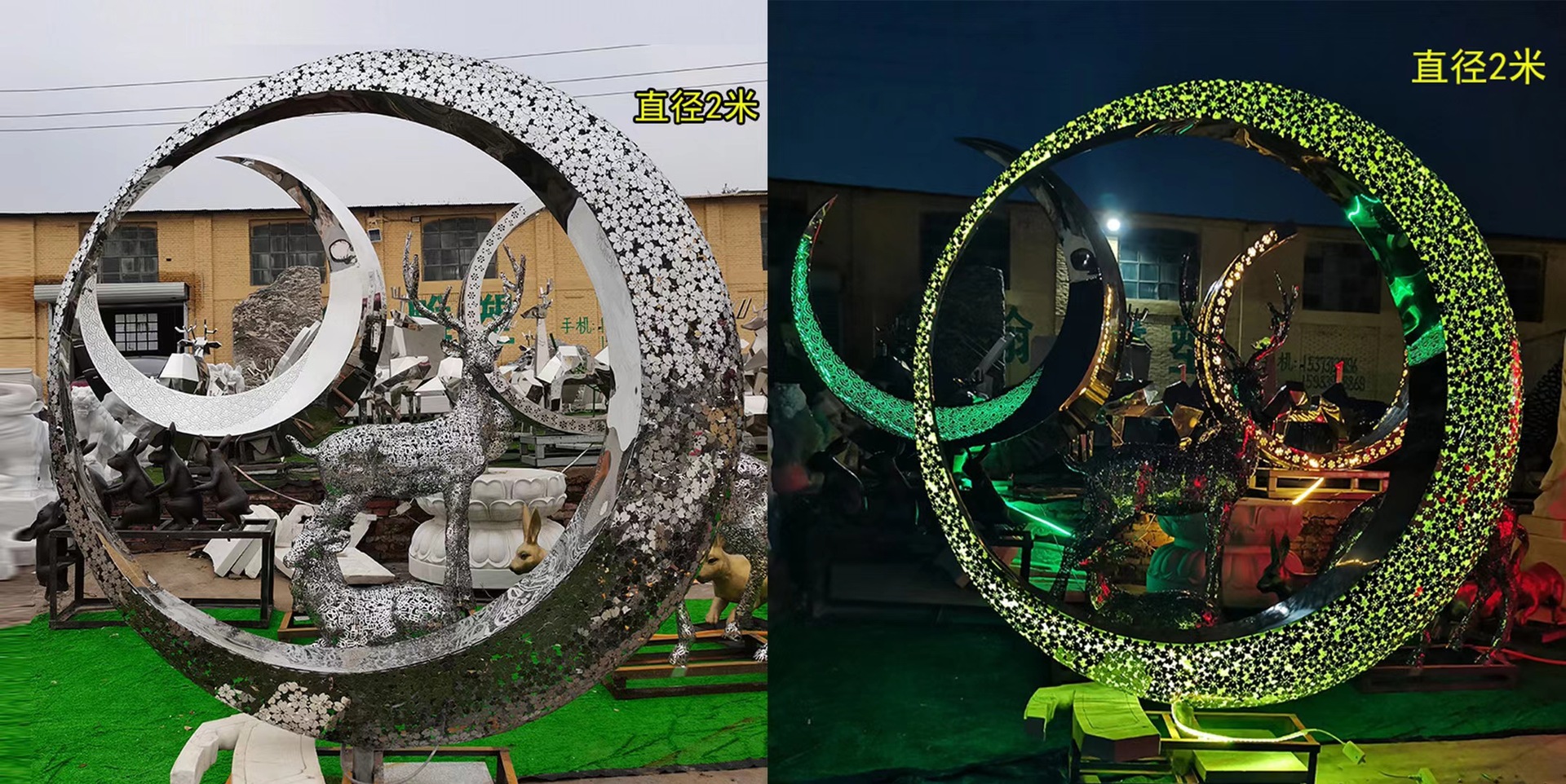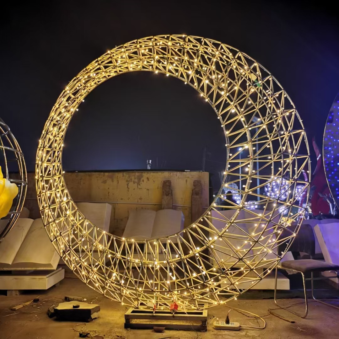 스테인레스 스틸 조각 배송 밤 빛나는 달 공원 호텔 광장 장식품 야외 풍경 도매