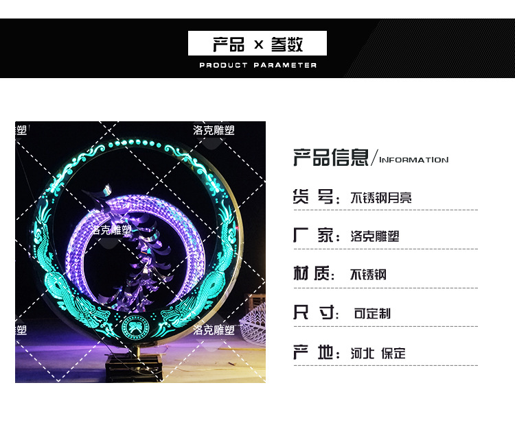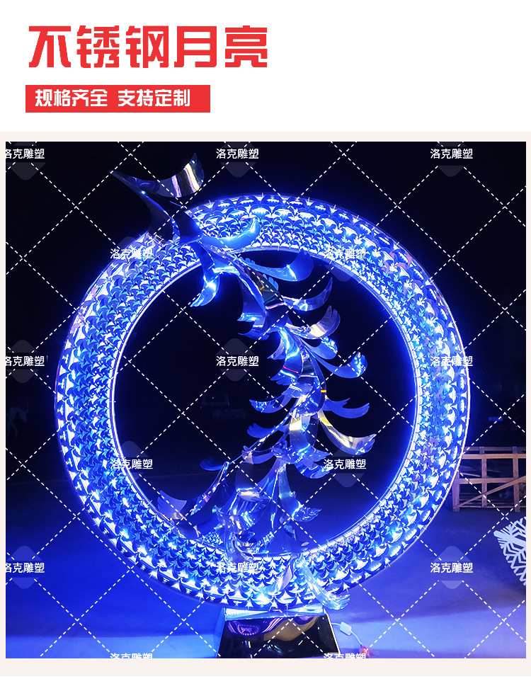 스테인레스 스틸 조각 배송 밤 빛나는 달 공원 호텔 광장 장식품 야외 풍경 도매스토어 가기