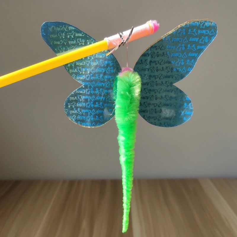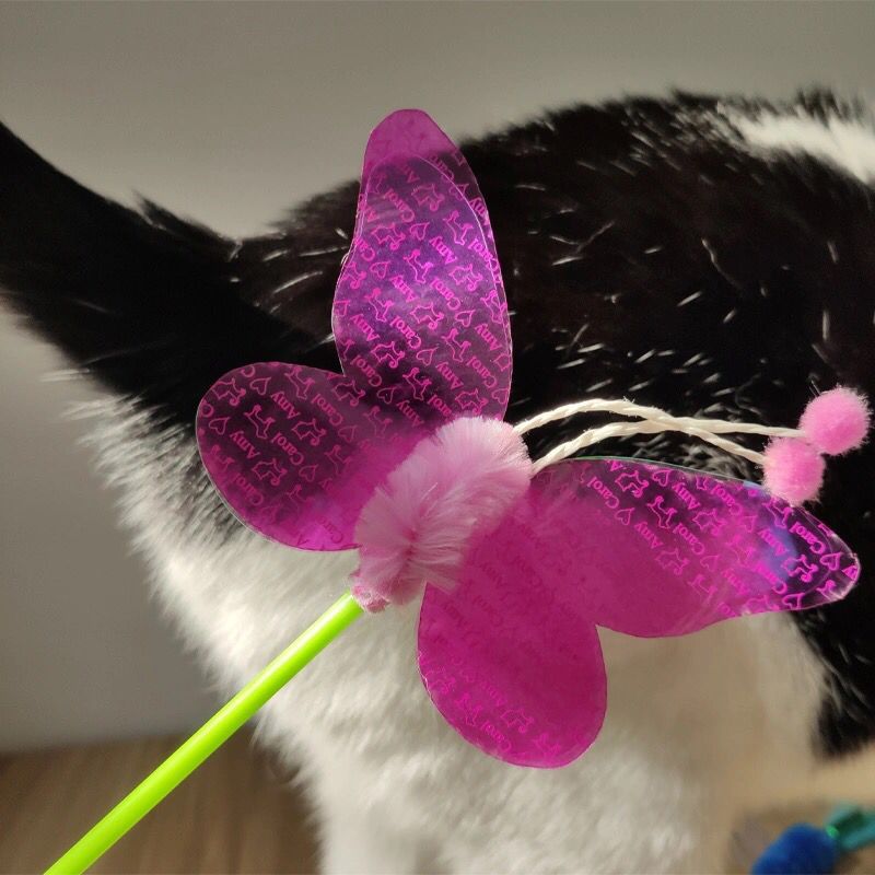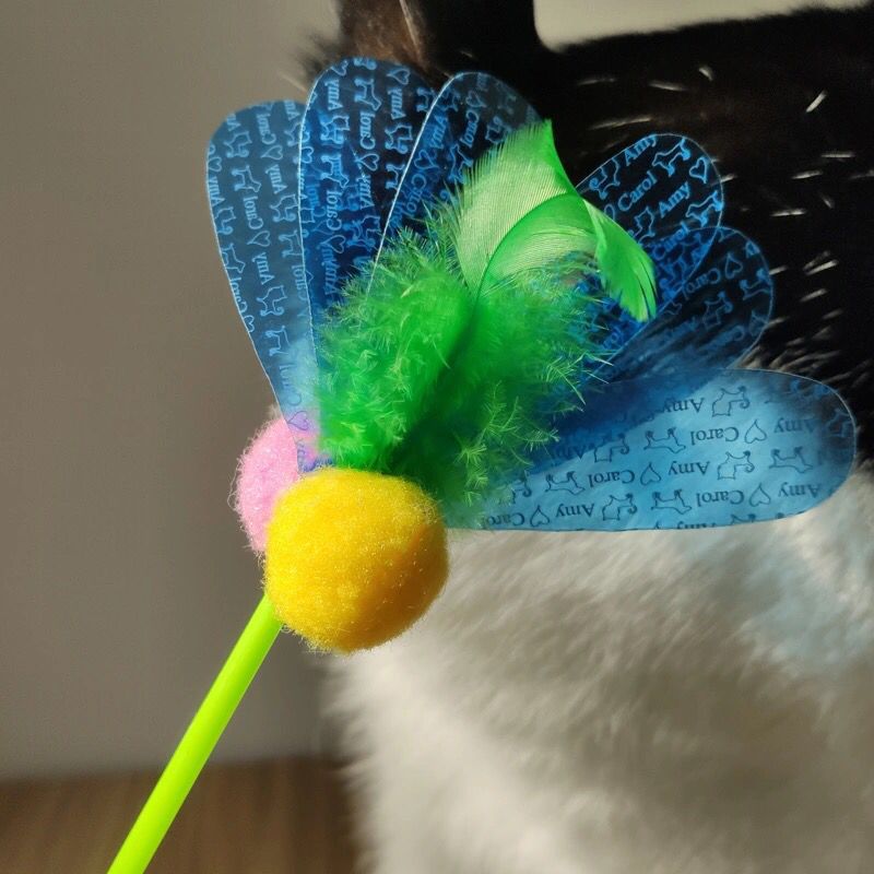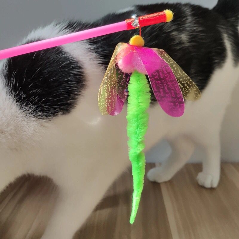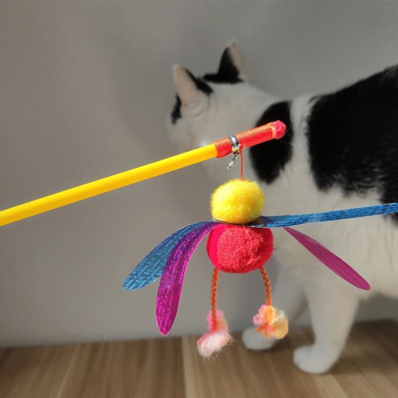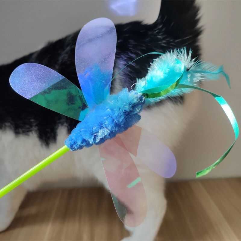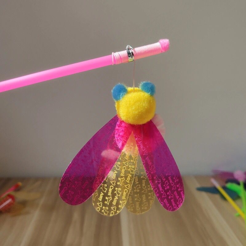 AmyCarol 고양이 놀리는 막대기 깃털 울리는 종이 봉제 공 장식 조각 곤충 나비 긴 막대 탄성 로프 목회 고양이 장난감스토어 가기