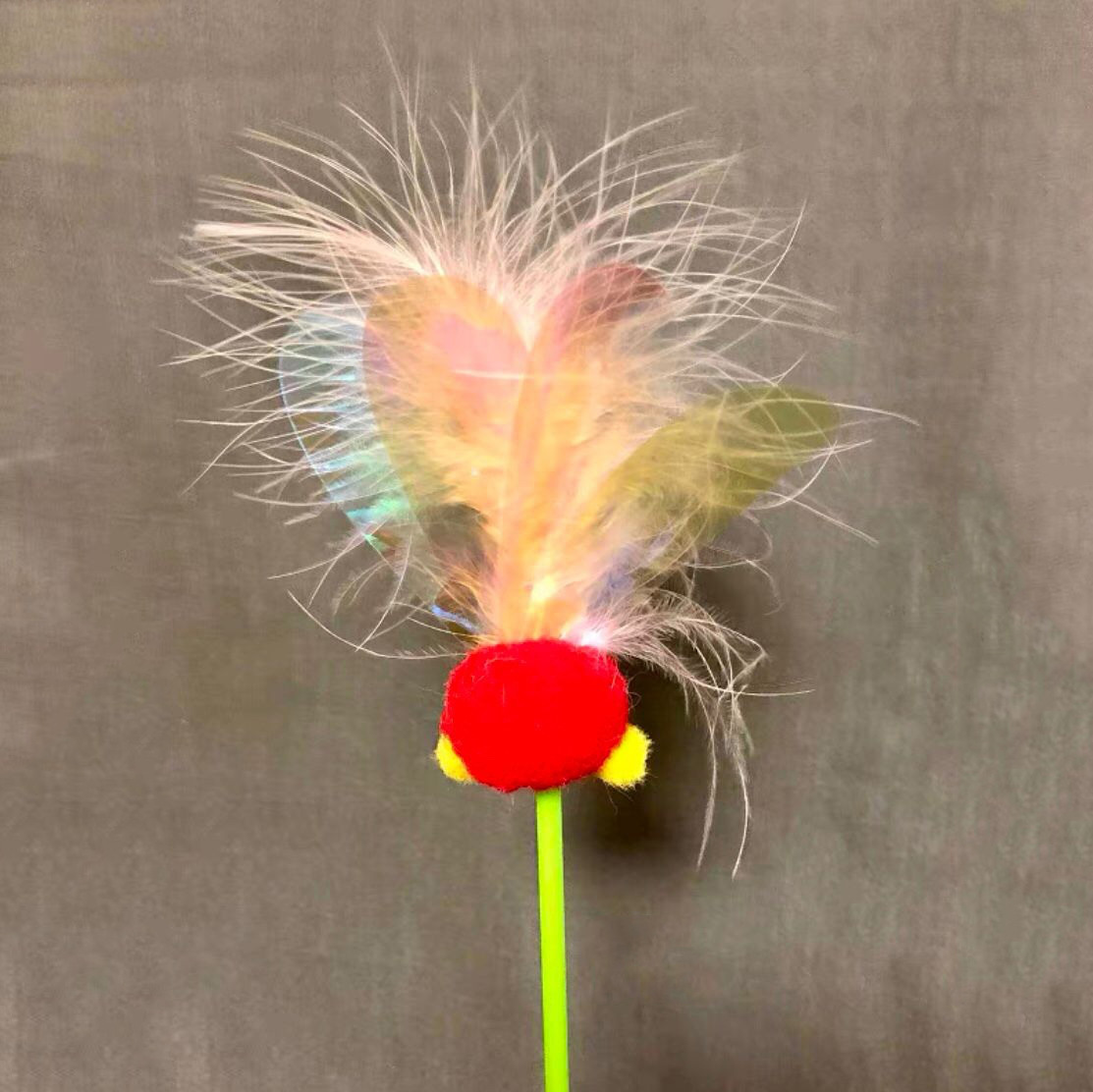 AmyCarol 고양이 놀리는 막대기 깃털 울리는 종이 봉제 공 장식 조각 곤충 나비 긴 막대 탄성 로프 목회 고양이 장난감
