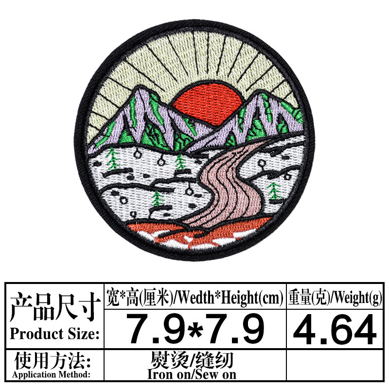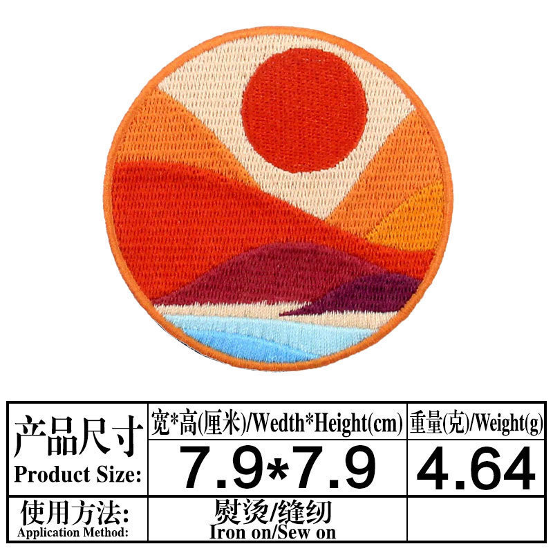 수 놓은 천 스티커 배지 유행 멋진 의류 액세서리 라운드 패치 스티커 수 놓은 풍경 풍경 일출 패턴스토어 가기