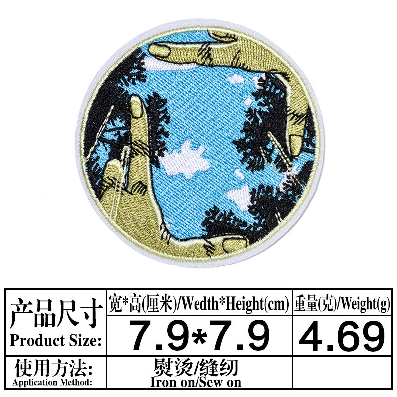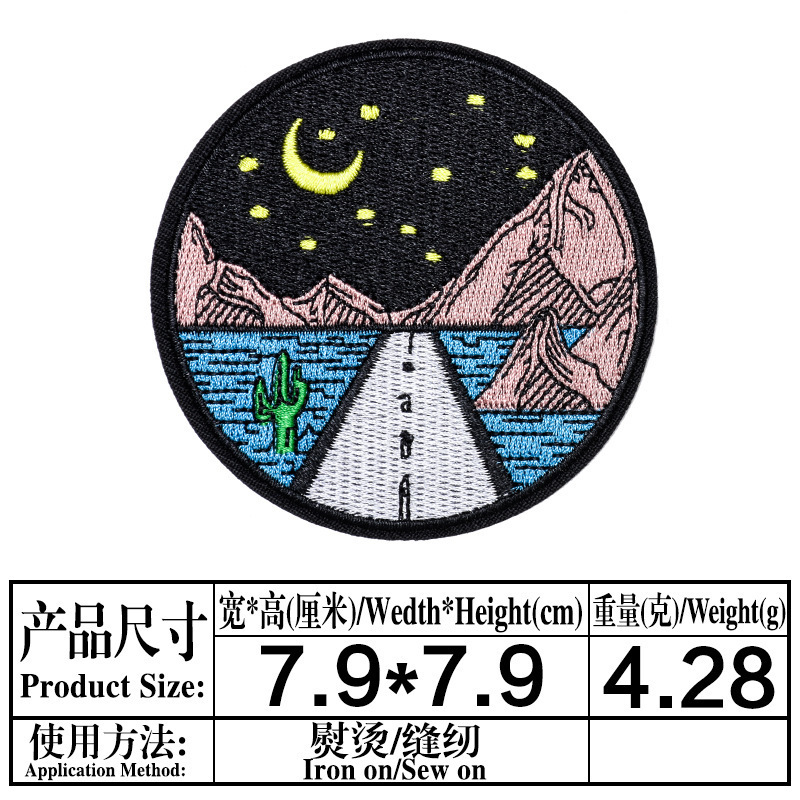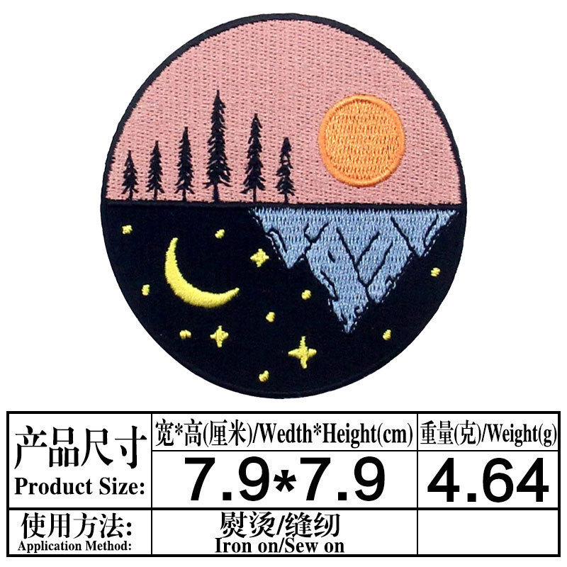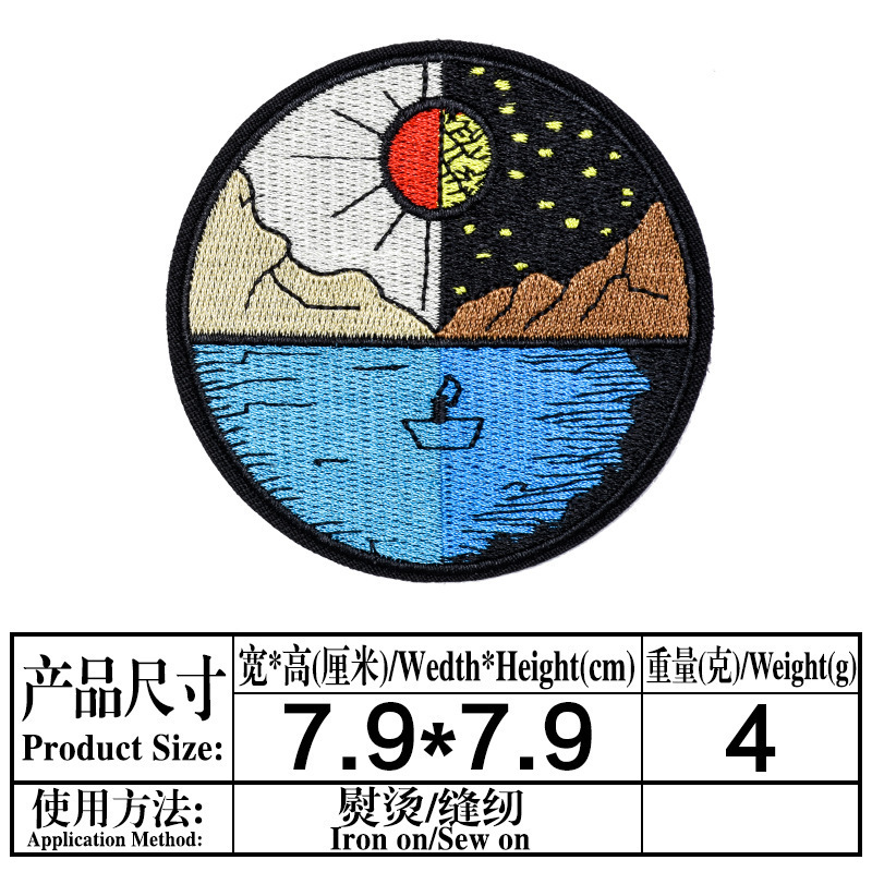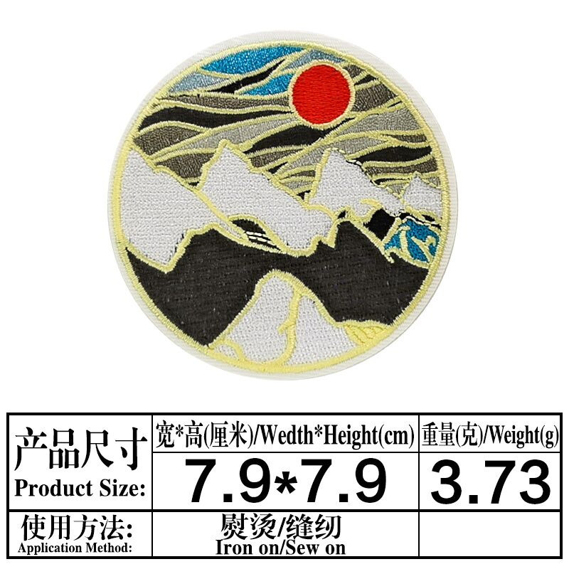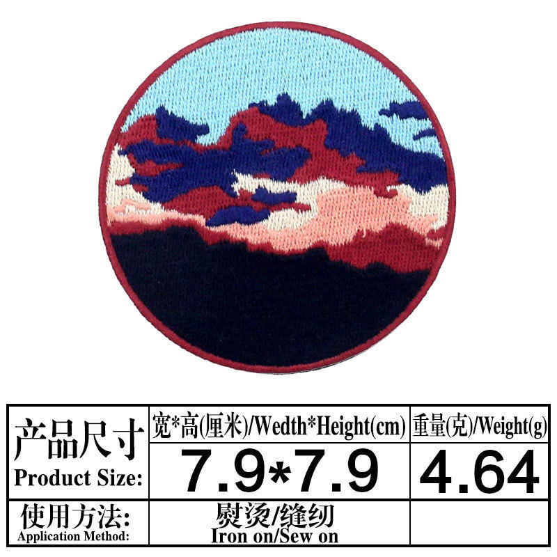 수 놓은 천 스티커 배지 유행 멋진 의류 액세서리 라운드 패치 스티커 수 놓은 풍경 풍경 일출 패턴