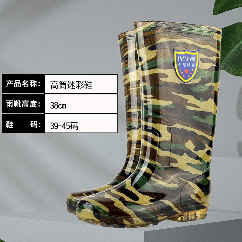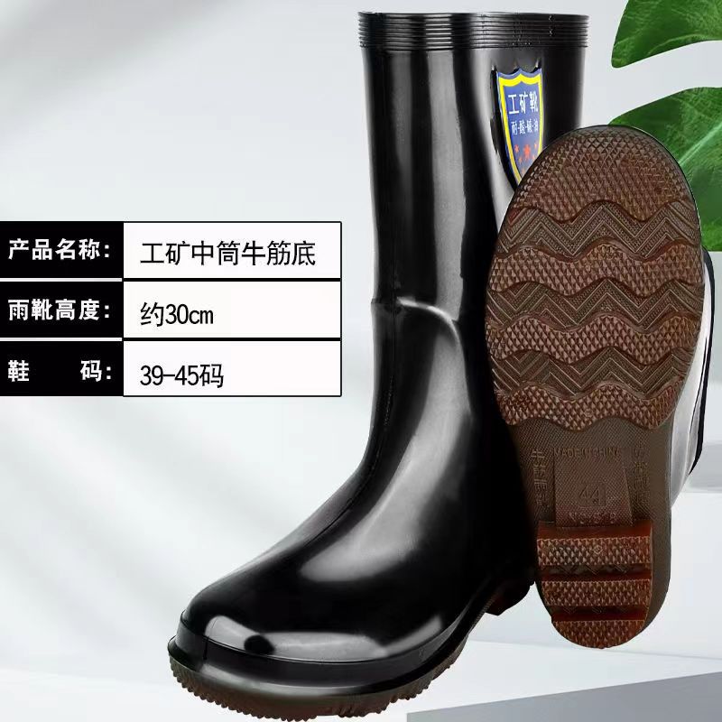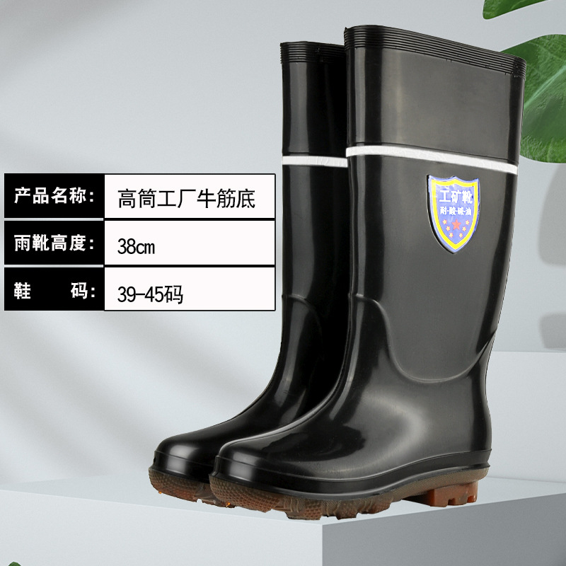 노동 보호 남자 중고통 소 힘줄 밑창 미끄럼 방지 공사 현장 레인 부츠 워터 부츠 방수 고무 신발 레인 부츠 공장 도매스토어 가기