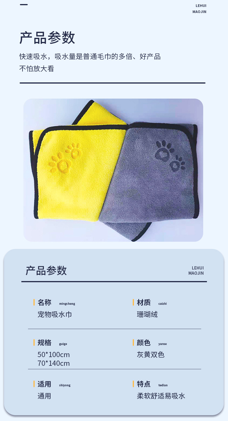 애완 동물 제품 흡수 수건 개 고양이 목욕 대형 목욕 수건 재고 도매 두꺼운 대형 수건스토어 가기