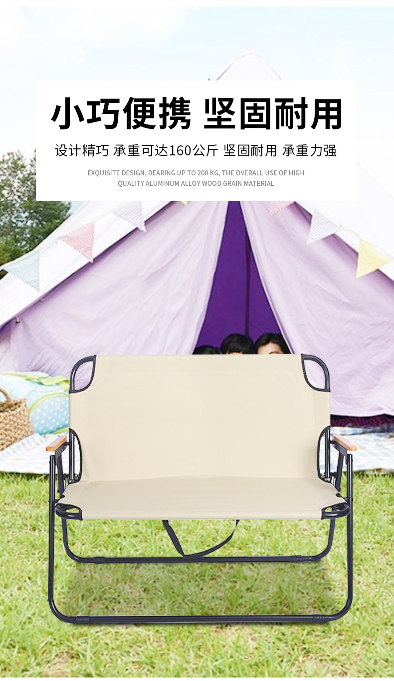 • 카키 더블 의자 나무 곡물 알루미늄 튜브