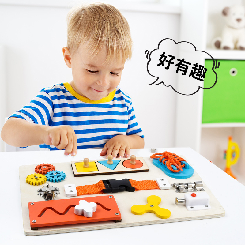 크로스 보더 몬테소리 교육 보조 조기 교육 잠금 해제 장난감 아기 몬테소리 테이블 게임 바쁜 보드스토어 가기