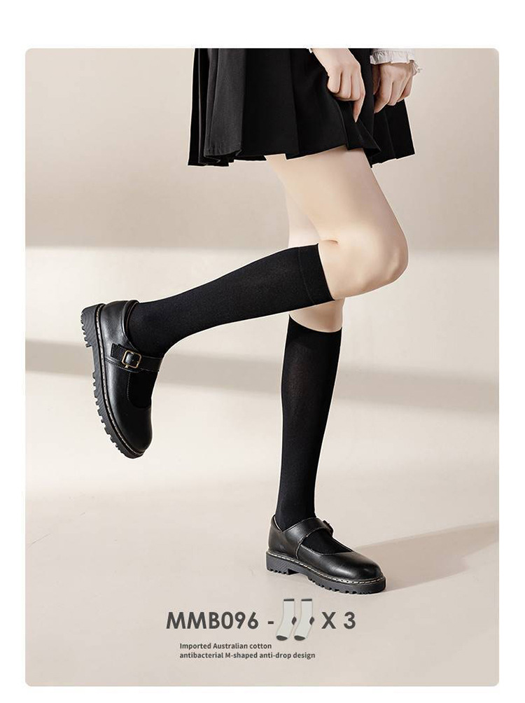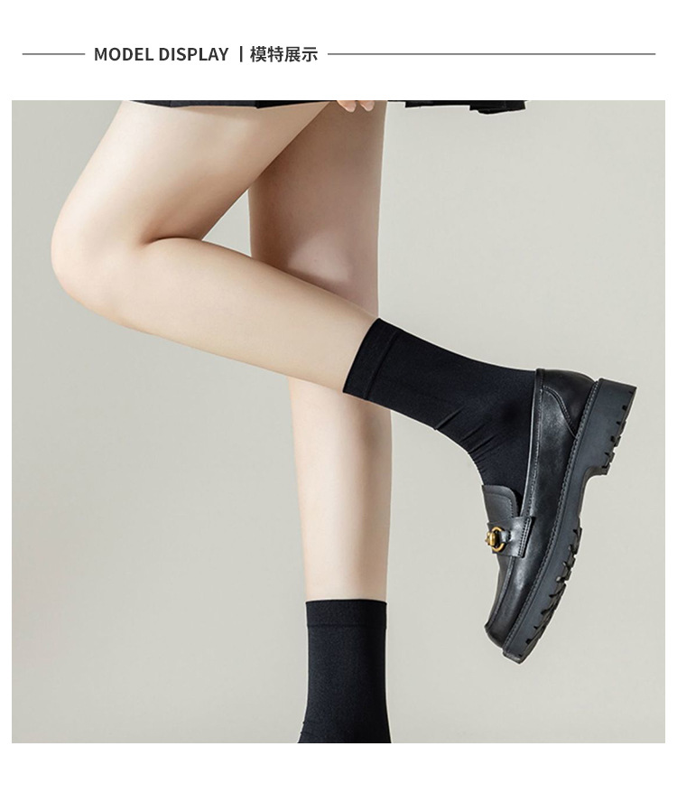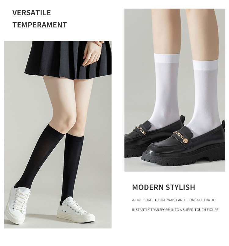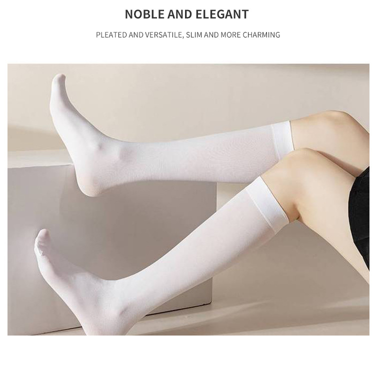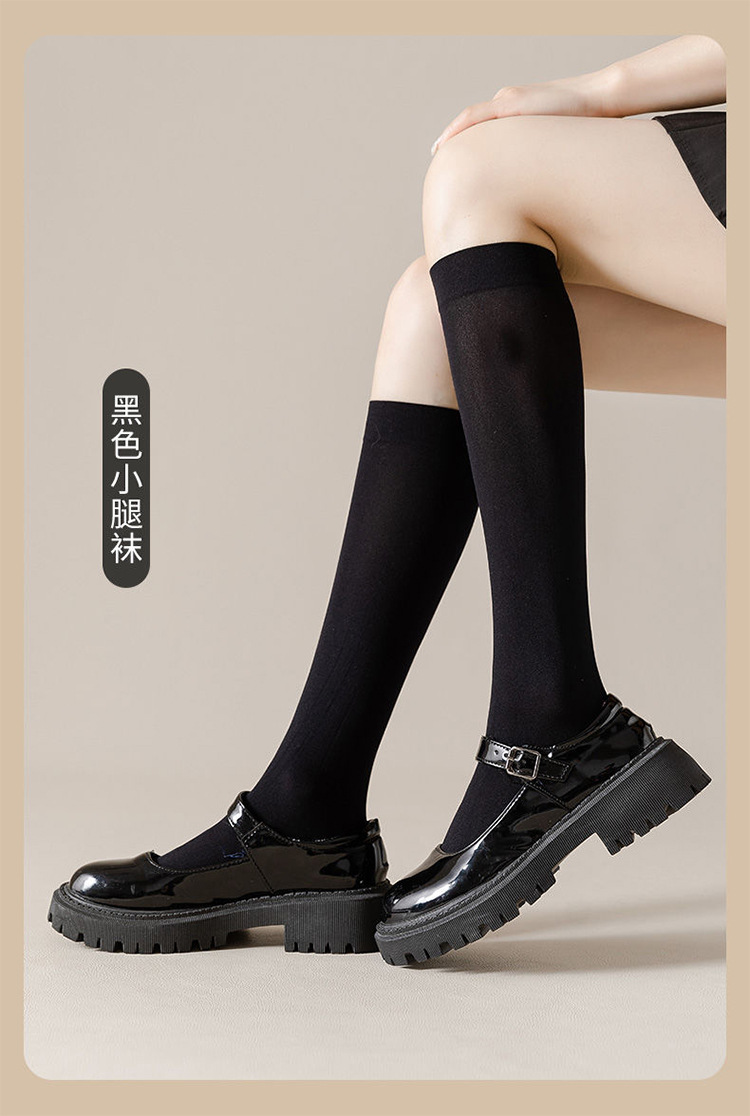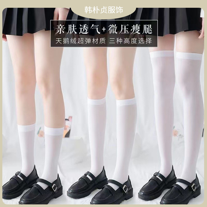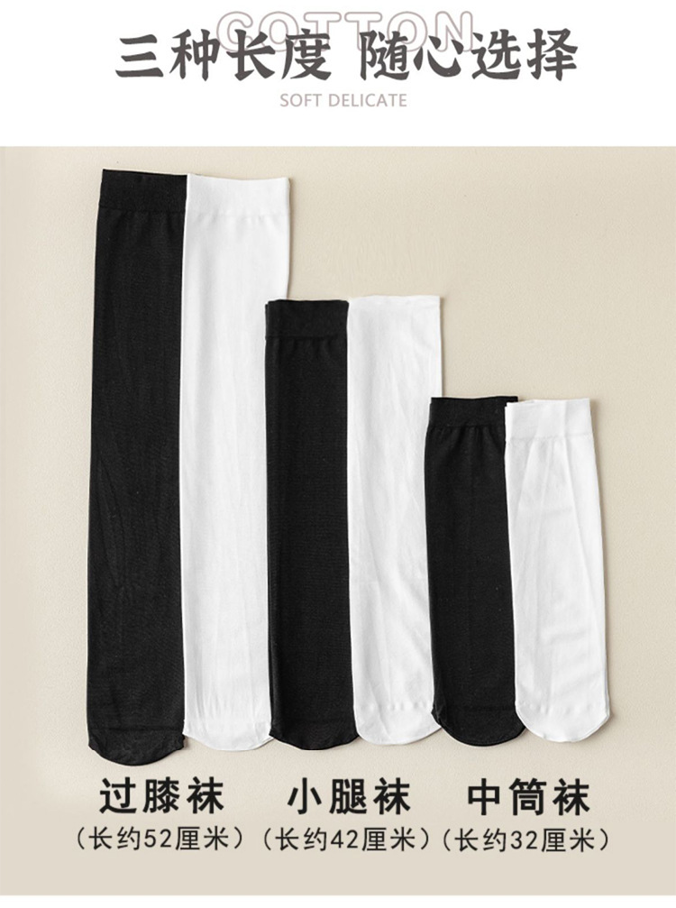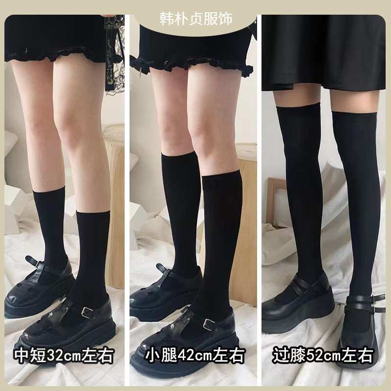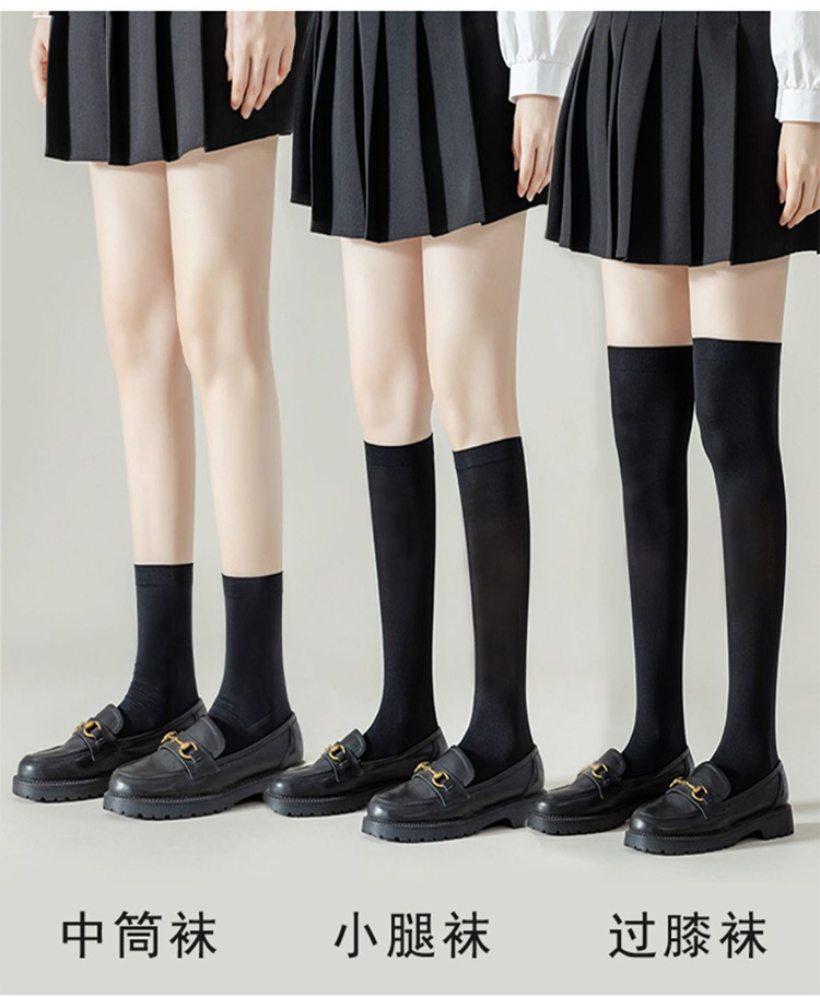 발 양말 일본 JK 양말 여자 여름 높은 양말 무릎 위의 얇은 다리 순수 블랙 스타킹 얼음 반 양말