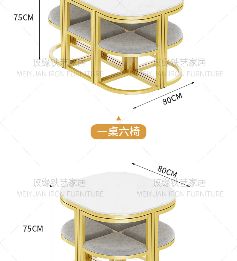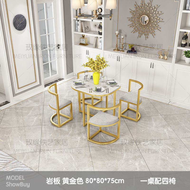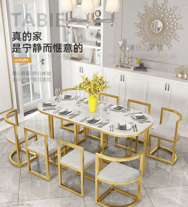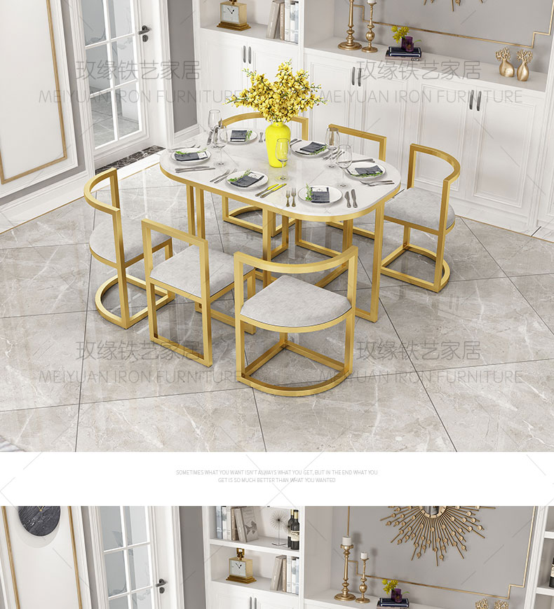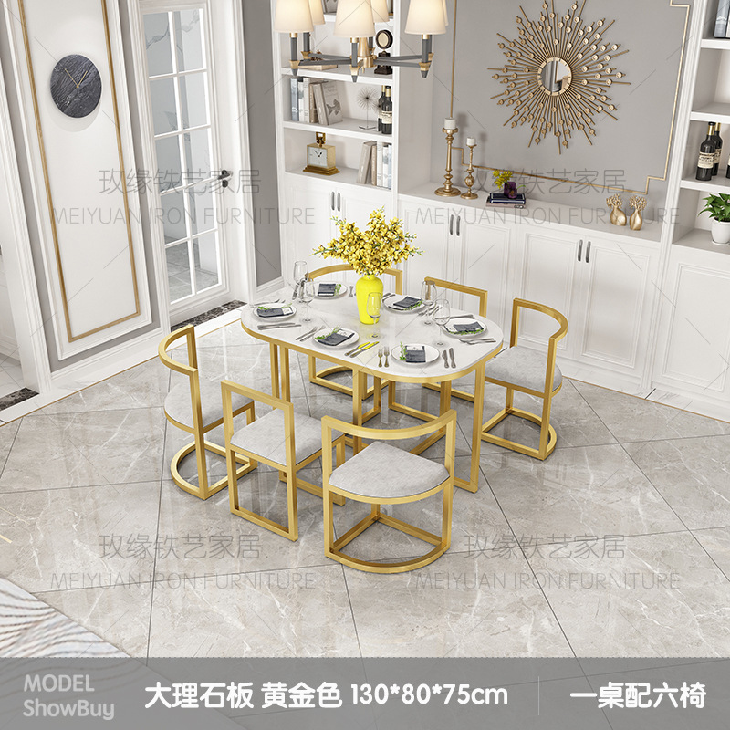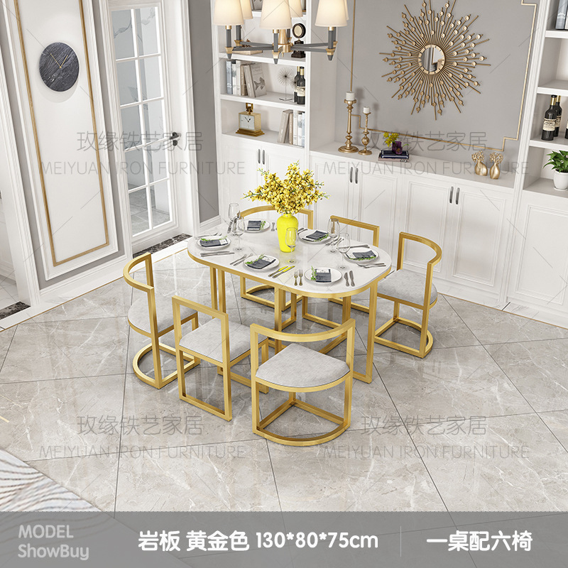 • 록 플레이트 골든 130*80*75 1 테이블 6 의자