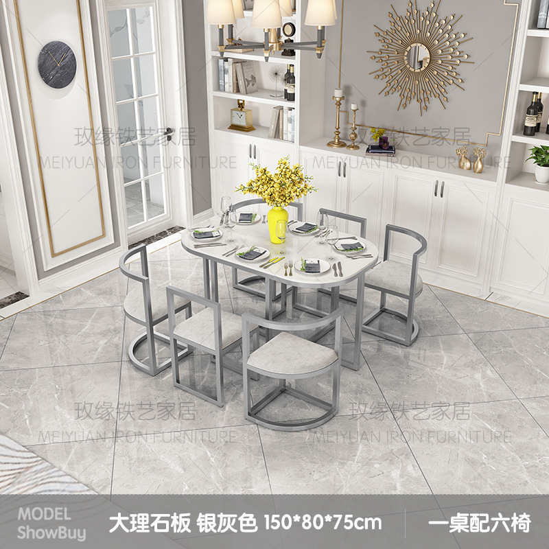 • 대리석 실버 회색 150*80*75 하나의 테이블과 6 개의 의자