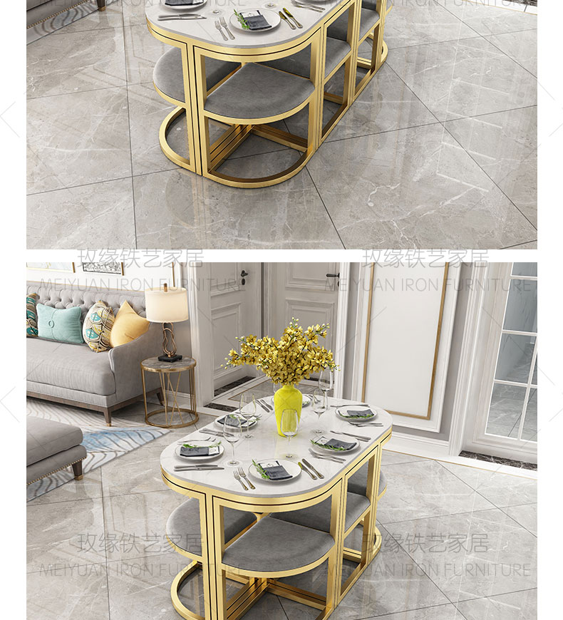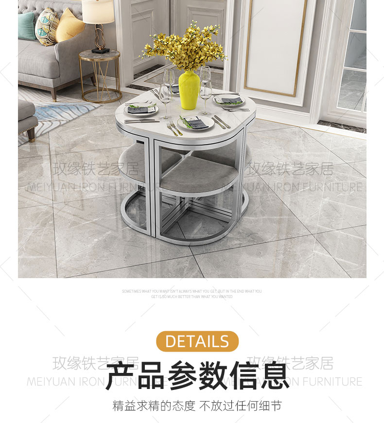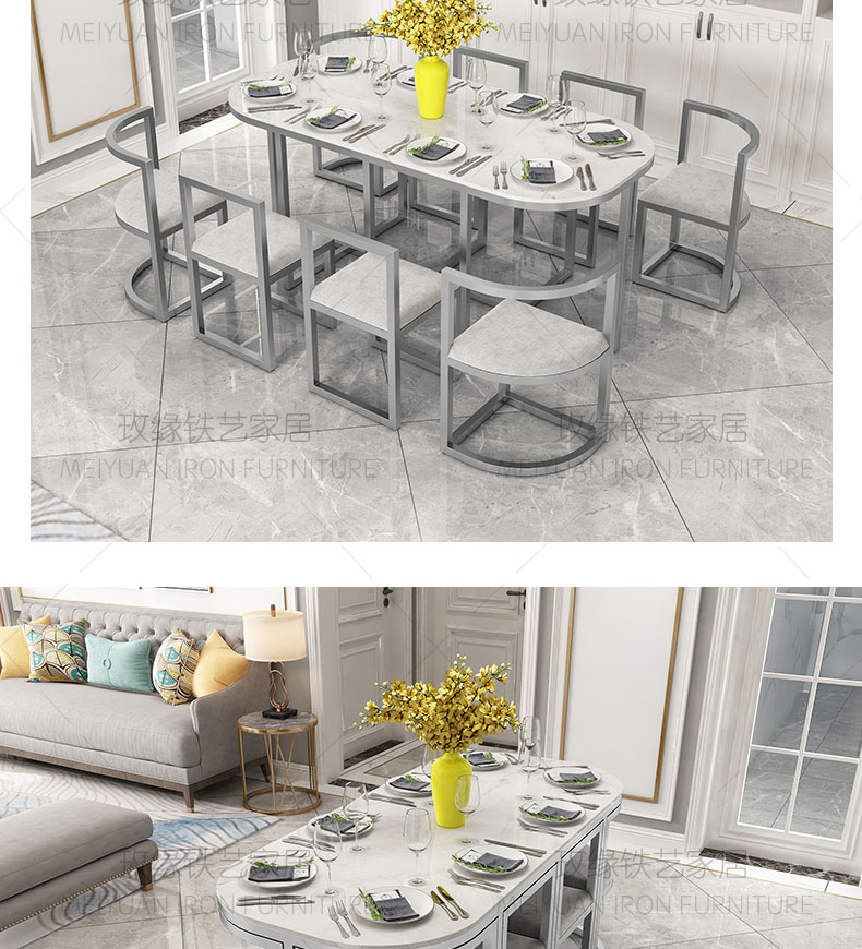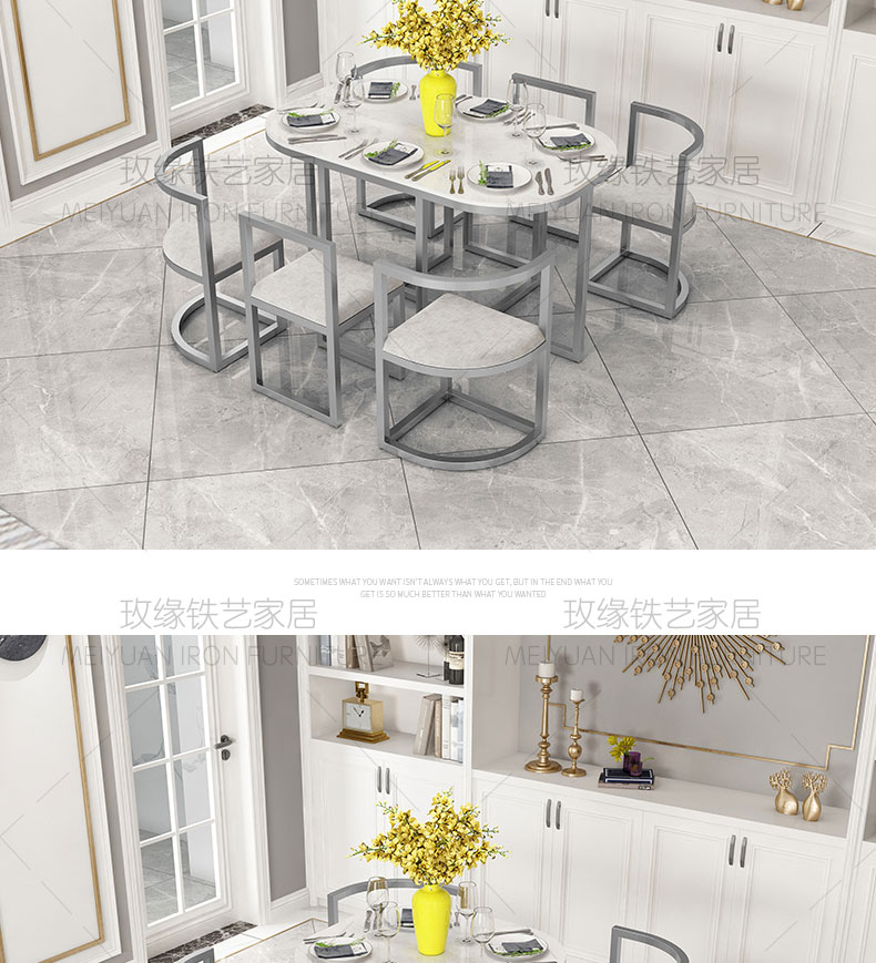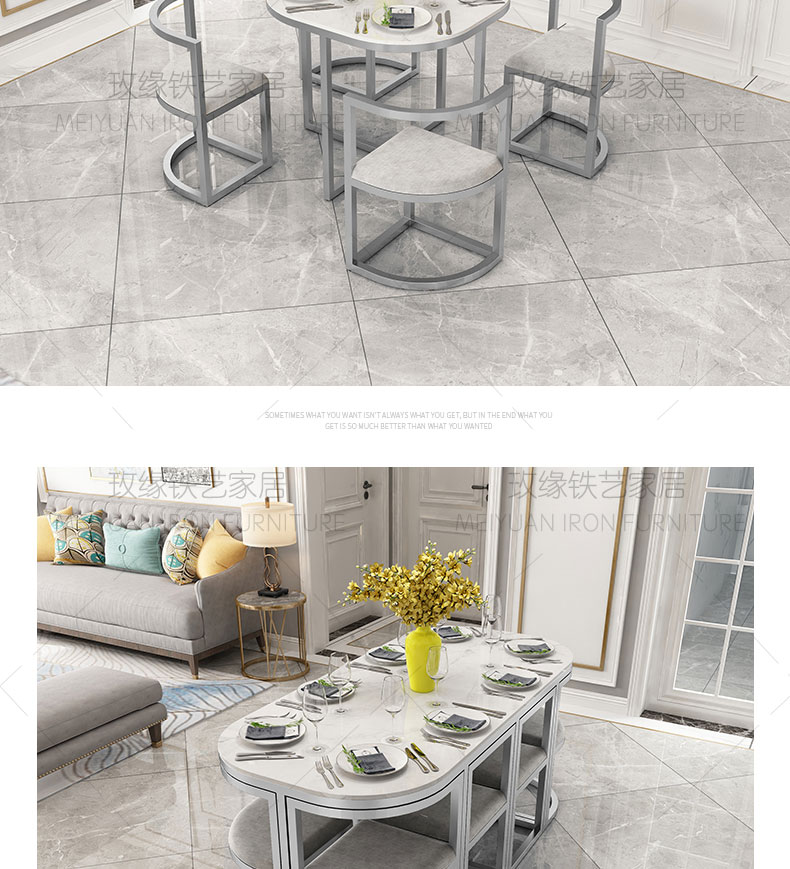 간단한 가벼운 고급 다기능 식탁 및 의자 조합 공간 절약형 암판 테이블 인터넷 유명인 가정용 작은 아파트 타원형 식탁스토어 가기