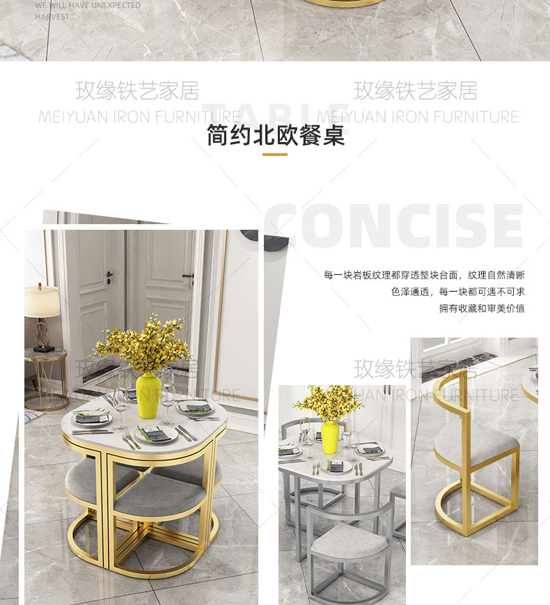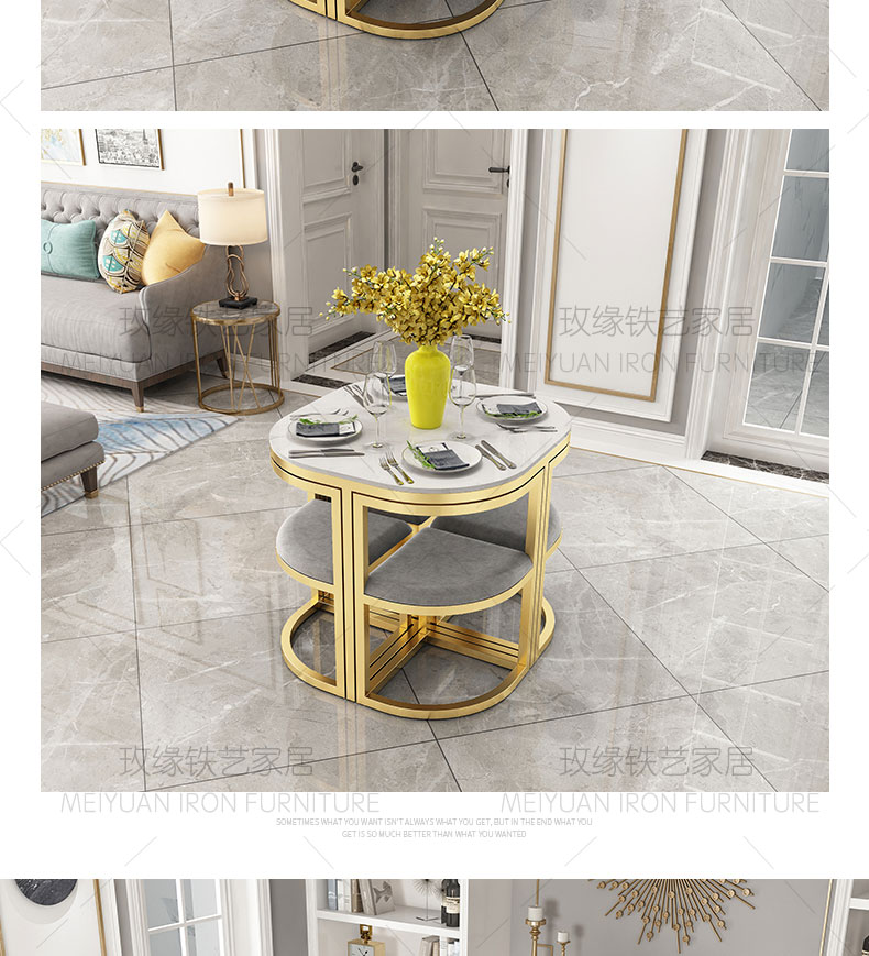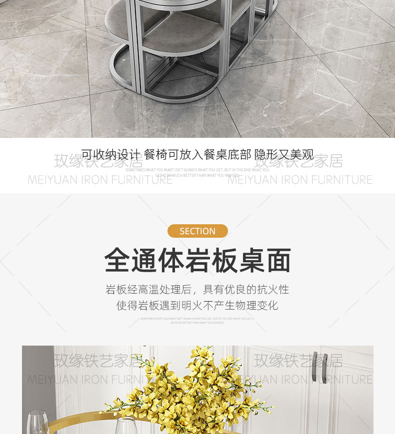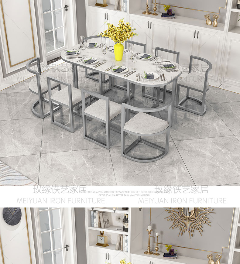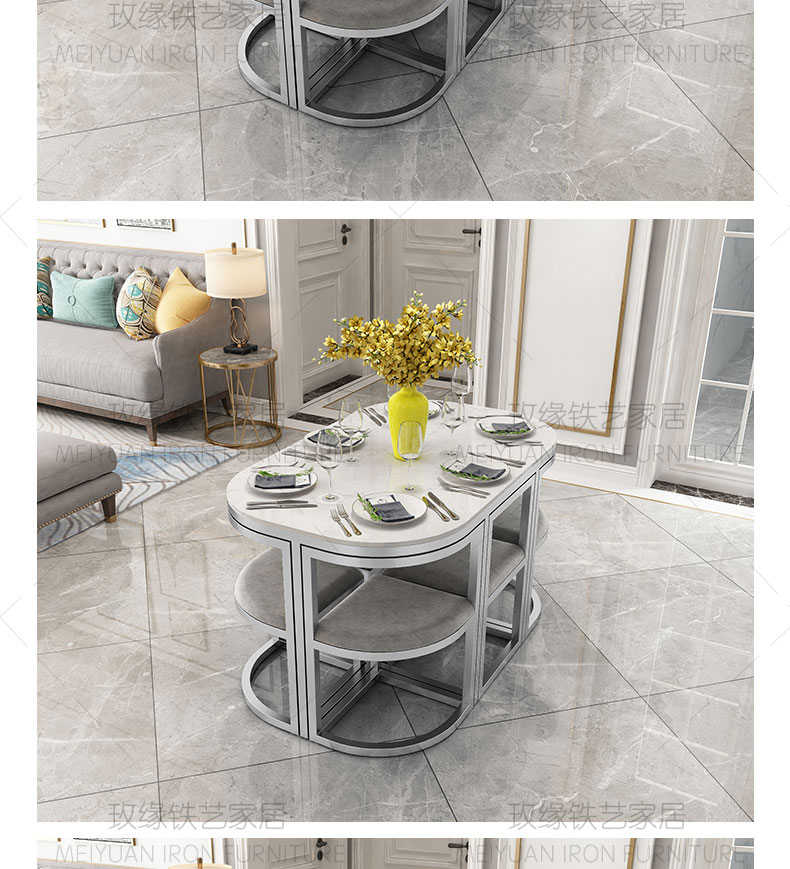 간단한 가벼운 고급 다기능 식탁 및 의자 조합 공간 절약형 암판 테이블 인터넷 유명인 가정용 작은 아파트 타원형 식탁스토어 가기