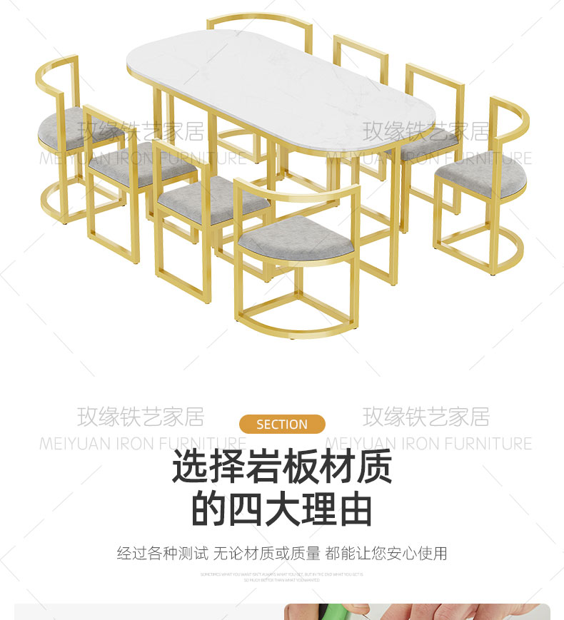 • 록 플레이트 골든 150*80*75 1 테이블 6 의자