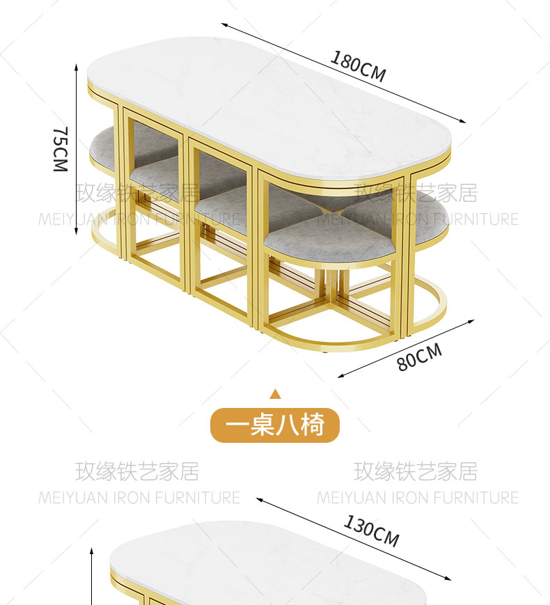 • 록 플레이트 골든 180*80*75 하나의 테이블과 8 개의 의자
