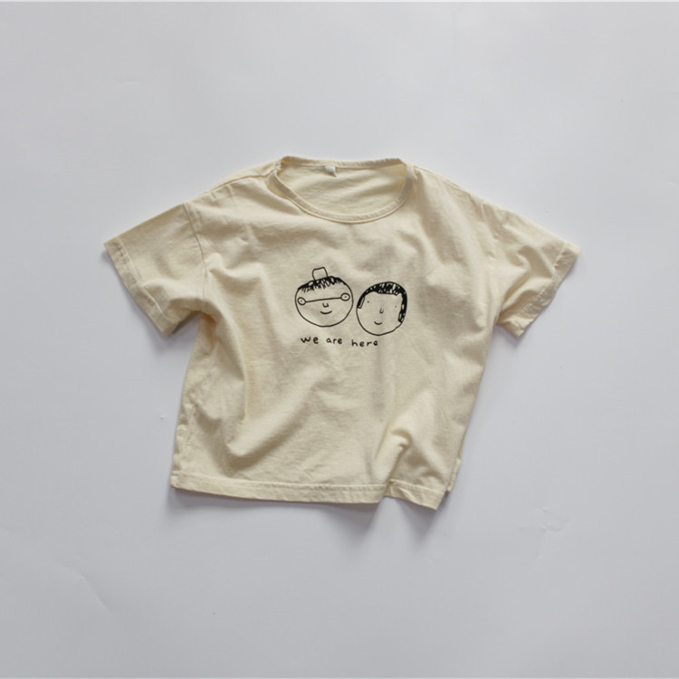여름 소년 티셔츠 한국 스타일 소녀 바닥 셔츠 반팔 솔리드 컬러 프린트 아동용 탑 라운드 넥 루즈 클래스 A 배송스토어 가기
