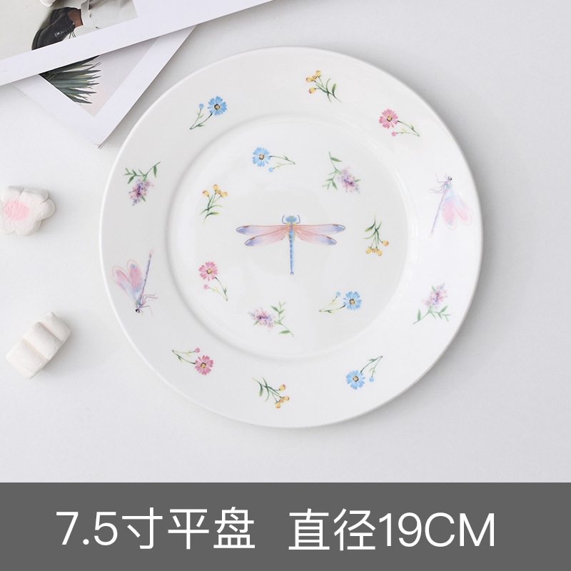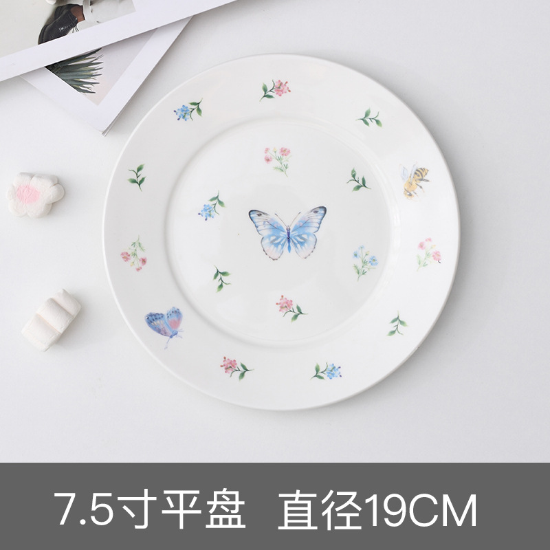 한국 INS 스타일 웃는 얼굴 다채로운 세라믹 접시 잠자리 소녀 나비 접시 디저트 접시 과일 샐러드 접시스토어 가기