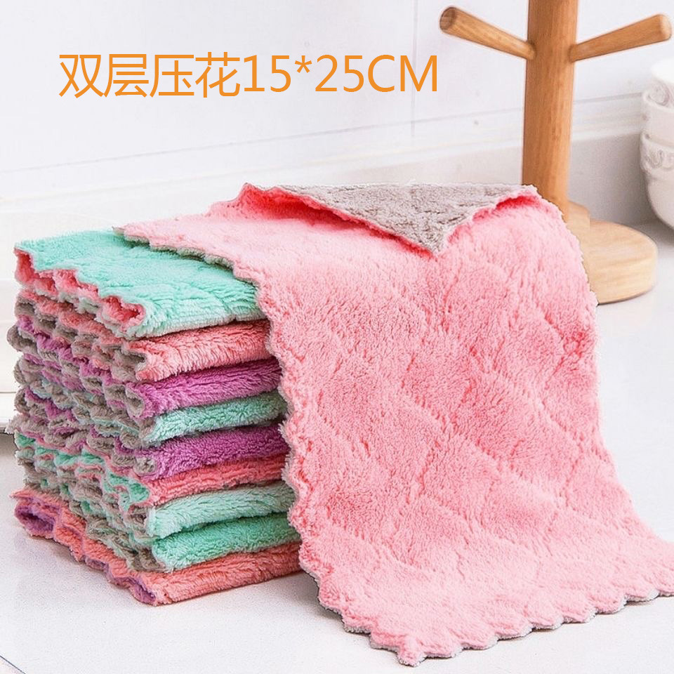 可定制经编珊瑚绒抹布双层双色加厚吸水不脱毛厨房清洁巾小号抹布