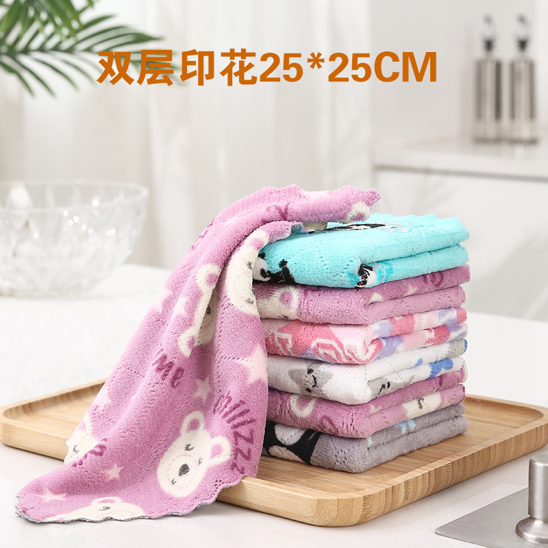 걸레 프린트 코랄벨벳 양면 두꺼운 흡수성 청소용 기름기 없는 설거지용 타월 테이블 닦기용 수세미 강력한 흡수력스토어 가기