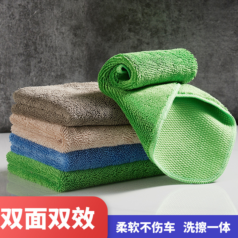 跨境定制款双面珊瑚绒抹布 超细纤维清洁擦车毛巾吸水鱼鳞玻璃布