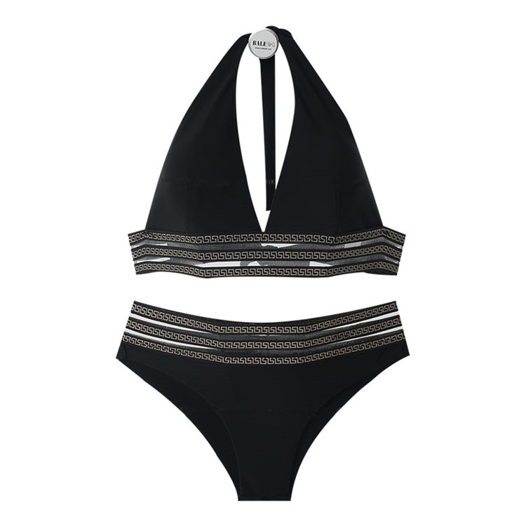 도매 수영복 여자의 한국 분할 3 점 섹시 인 블랙 삼각형 비키니 푸시 업 비키니 수영복
