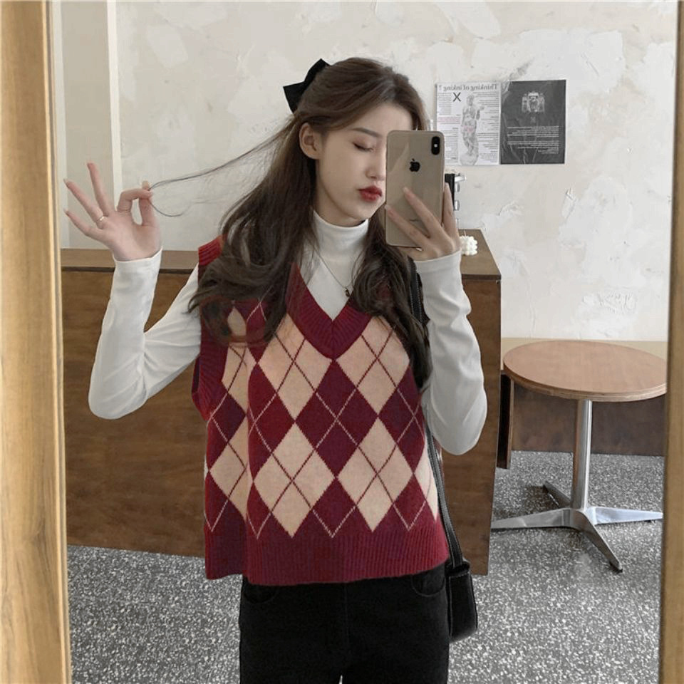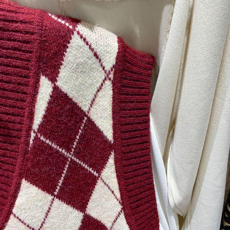루즈핏 마름모 니트 조끼 레이어드 조끼 여성용 봄 가을 신상 프렌치 레트로 브이넥 레이지 스타일 조끼스토어 가기